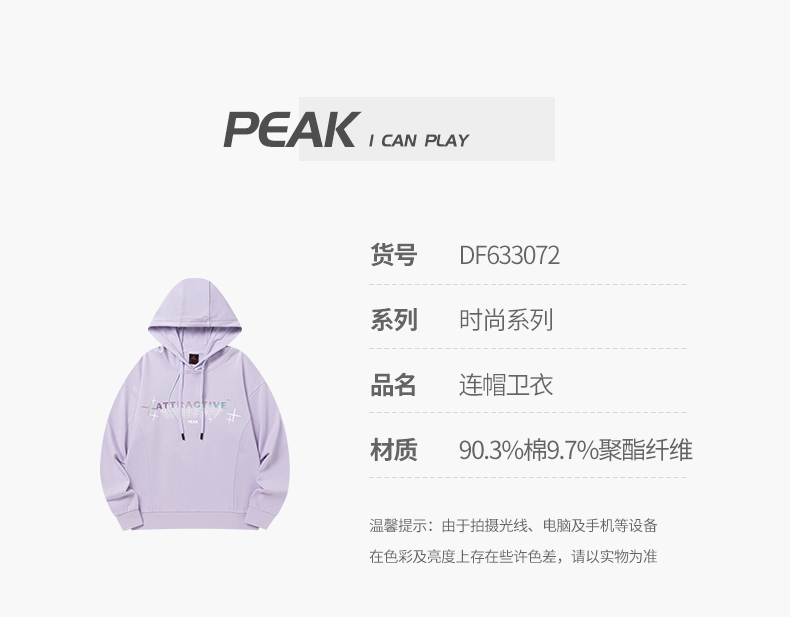 匹克运动卫衣女士春夏新款连帽卫衣长袖休闲百搭简约纯色运动上衣