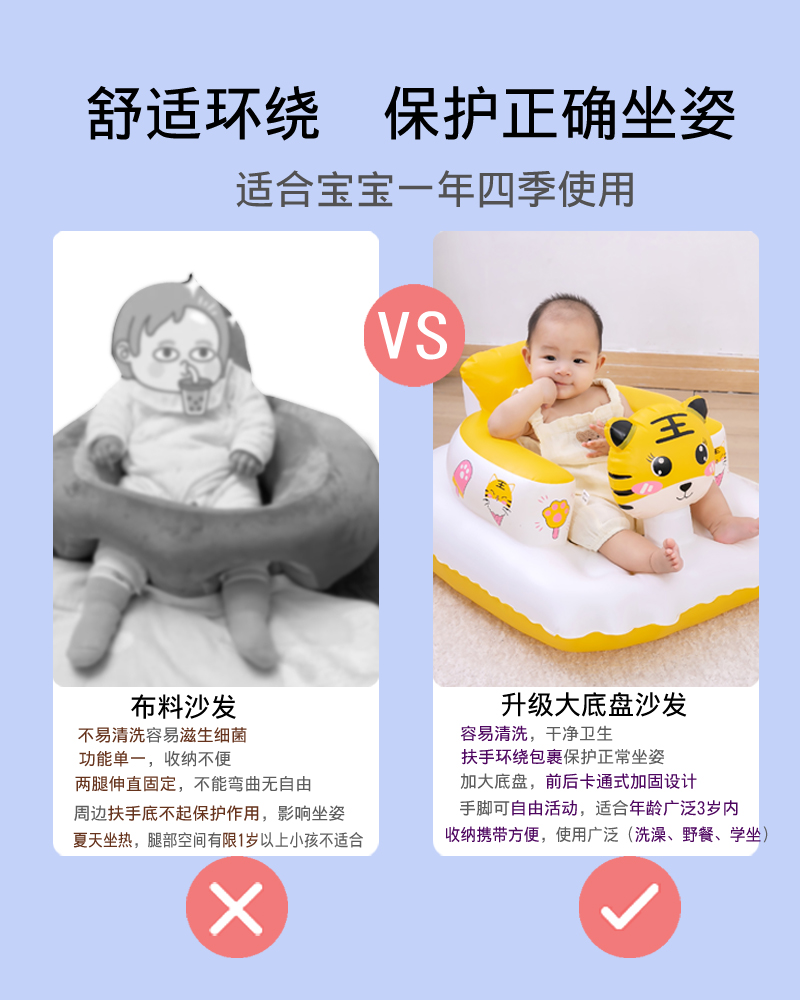 婴儿学坐椅宝宝训练坐立神器防摔座椅不伤脊柱儿童充气沙发学坐垫