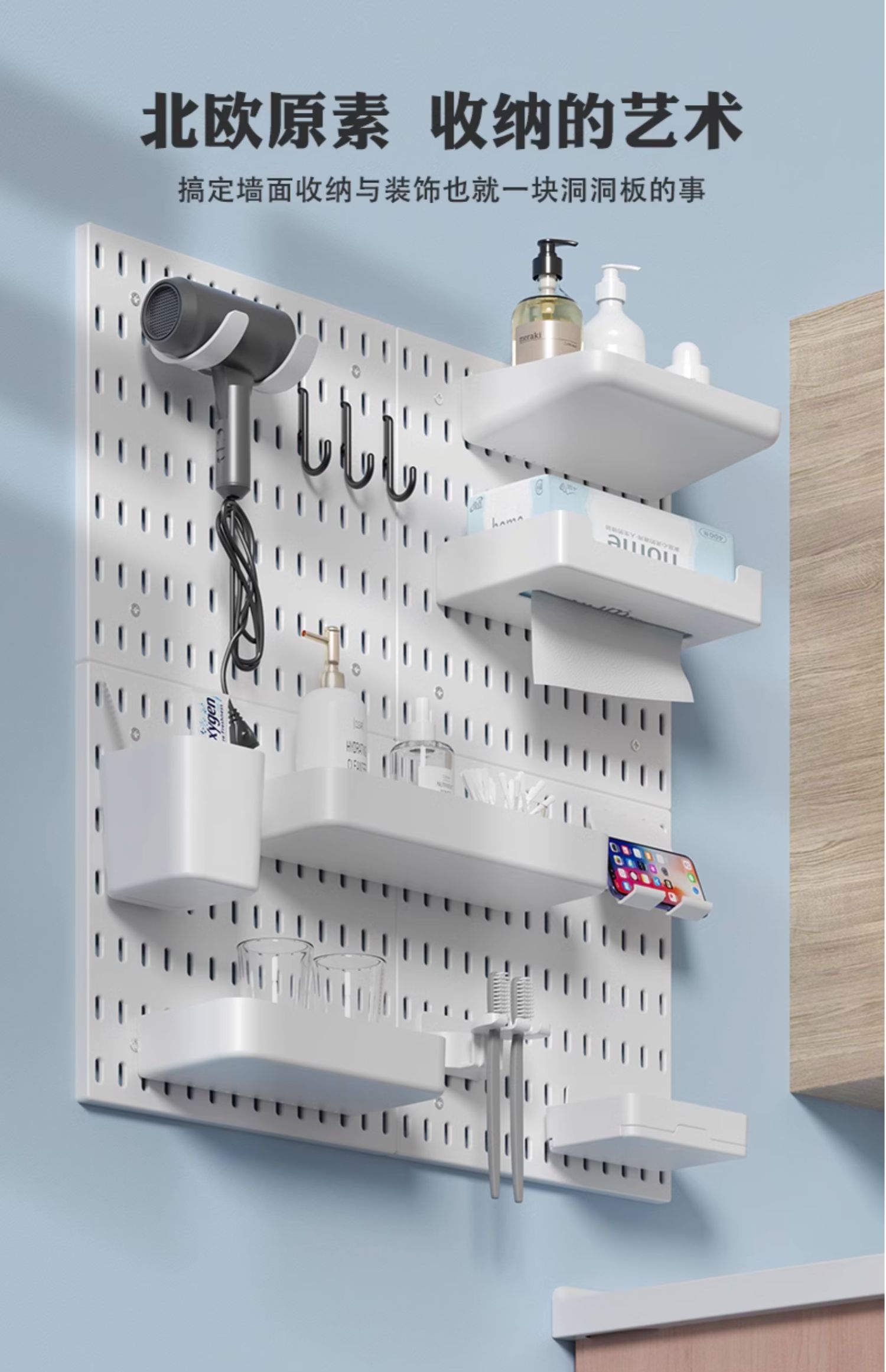淋浴房浴室洗手台盆卫生间墙面无痕贴免打孔洞洞板收纳墙上置物架