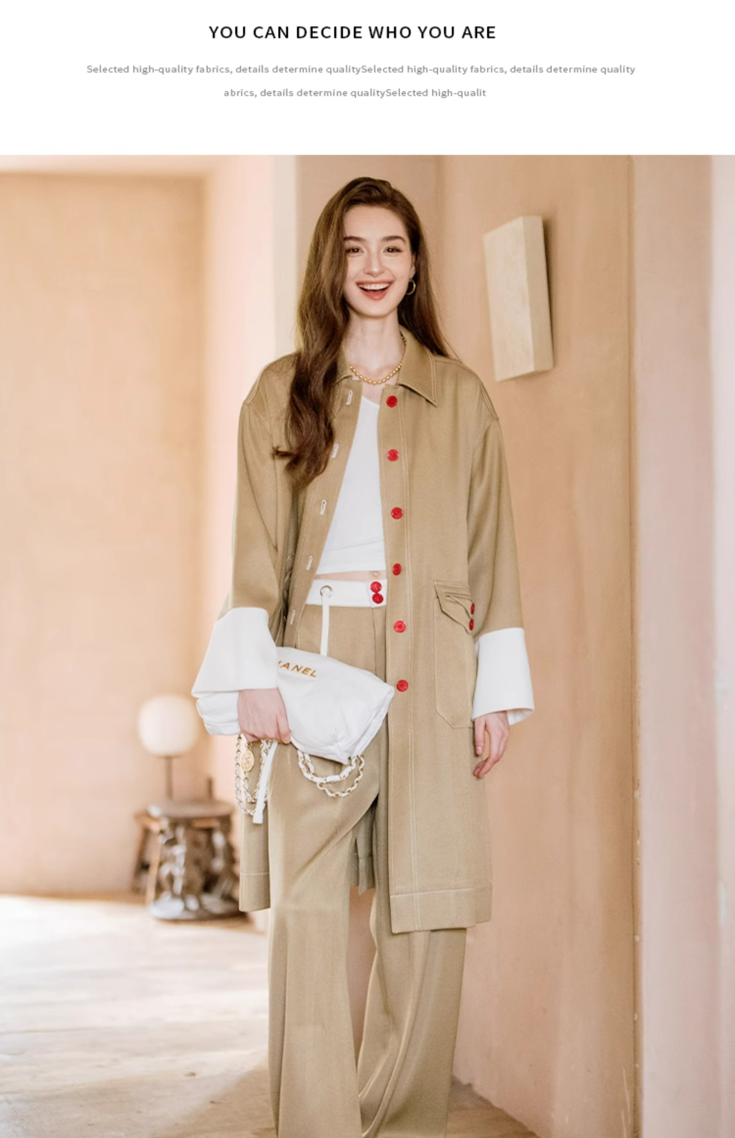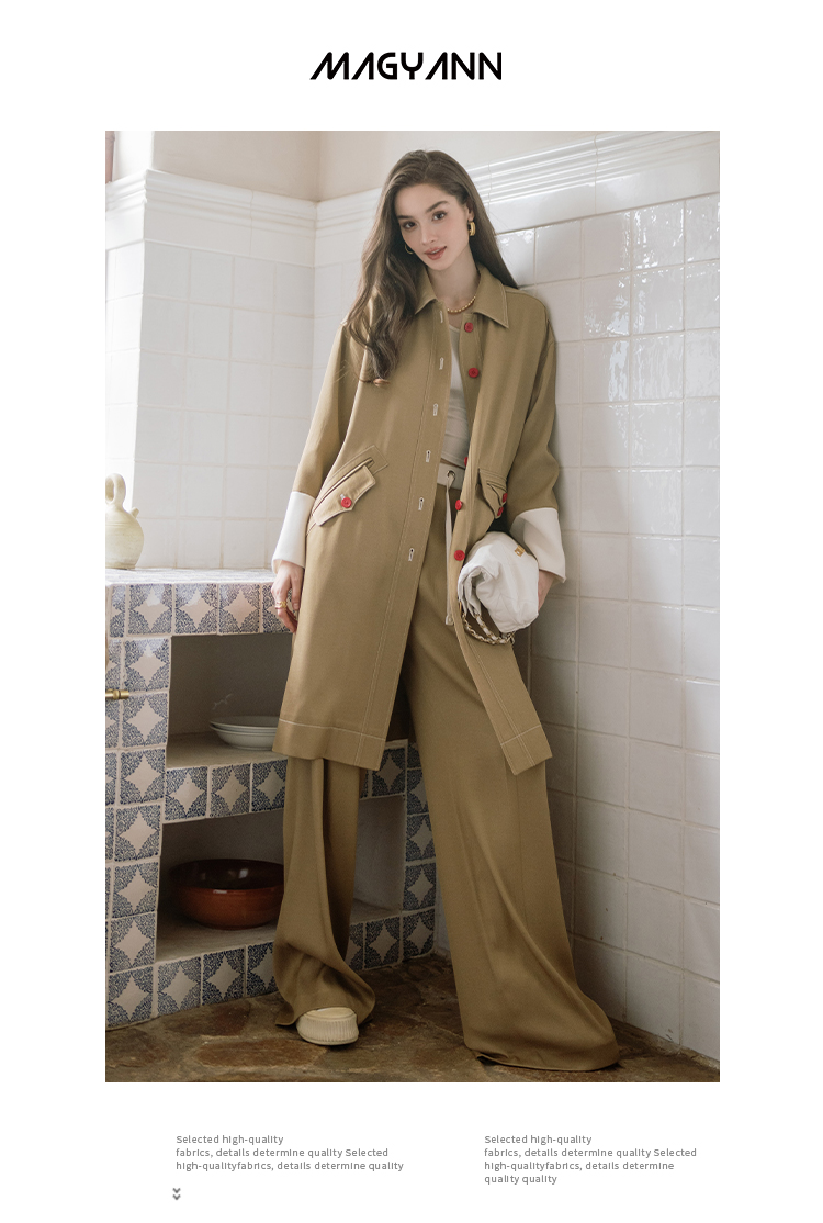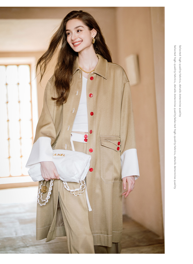 Magyann设计师原创2025春简约休闲翻边拼色风衣女中长款