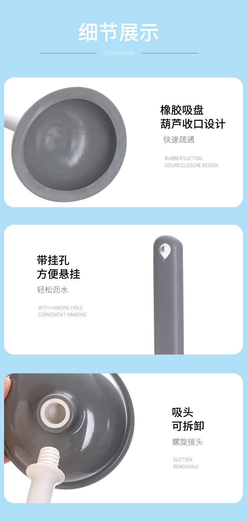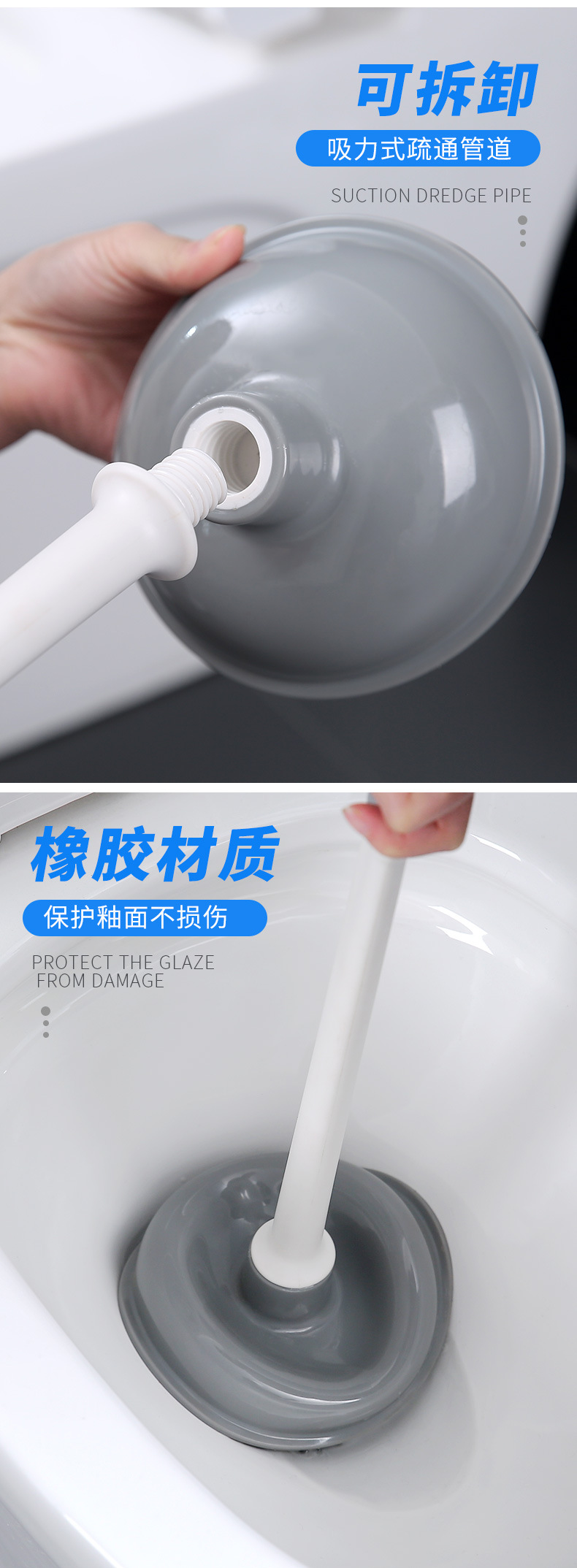 家用卫生间马桶吸棒橡胶疏通器坐便器管道堵塞疏通皮搋子不脏手