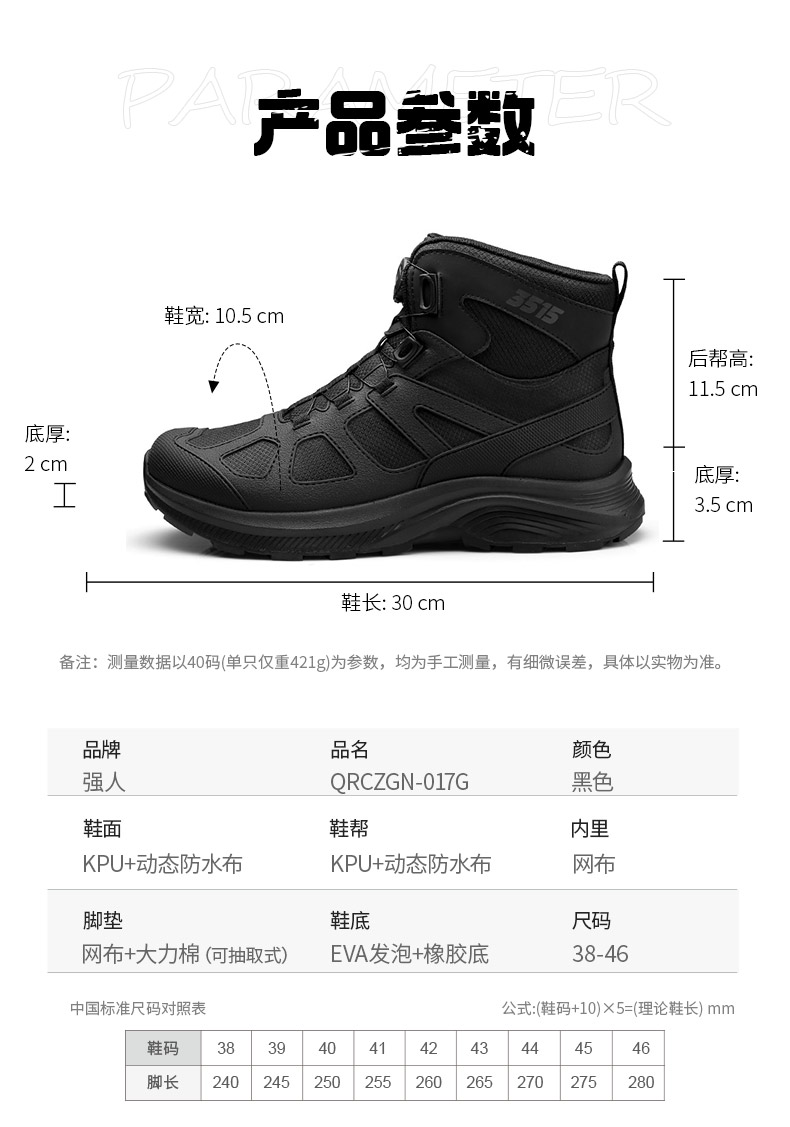 强人3515户外靴男超轻徒步登山鞋缓震透气快速反应战术靴子防刺穿