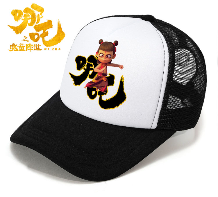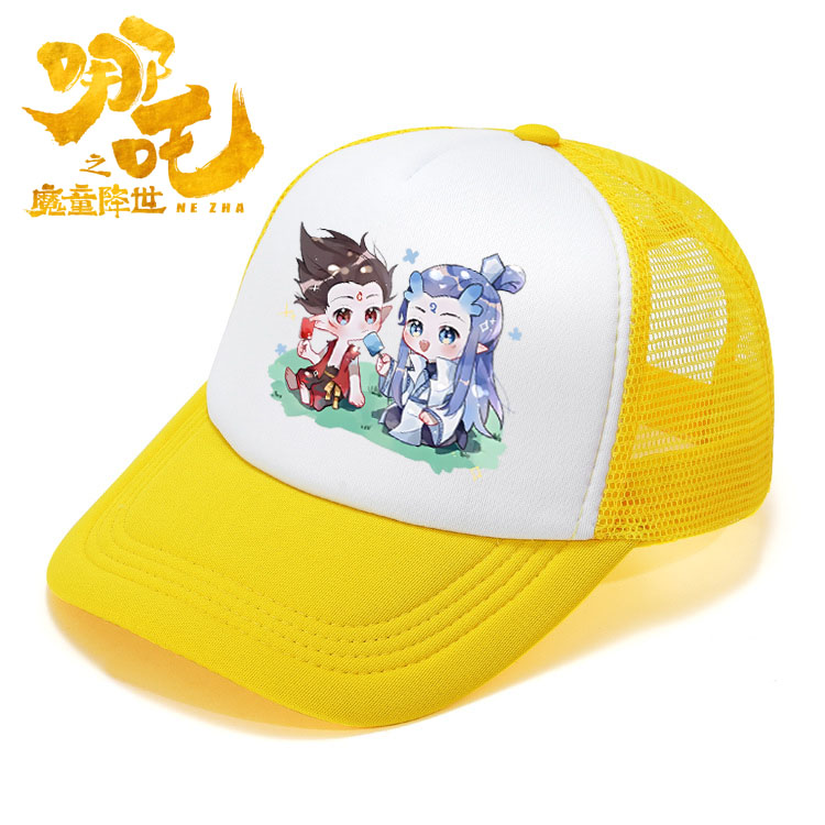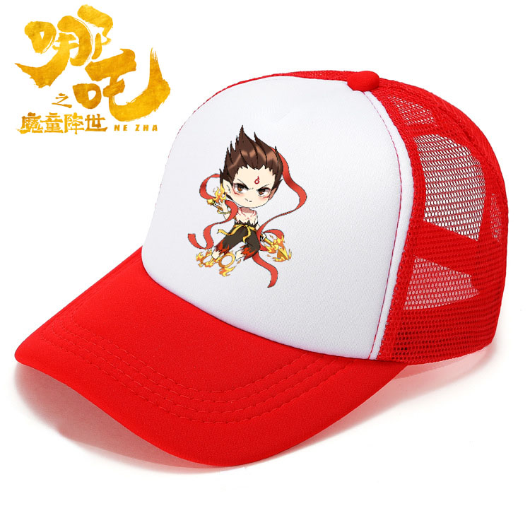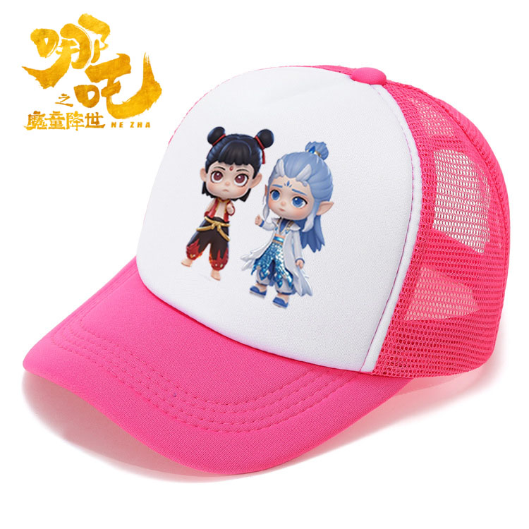 新款卡通哪吒遮阳海绵网帽中小学生遮阳网帽夏季洋气多色棒球帽酷