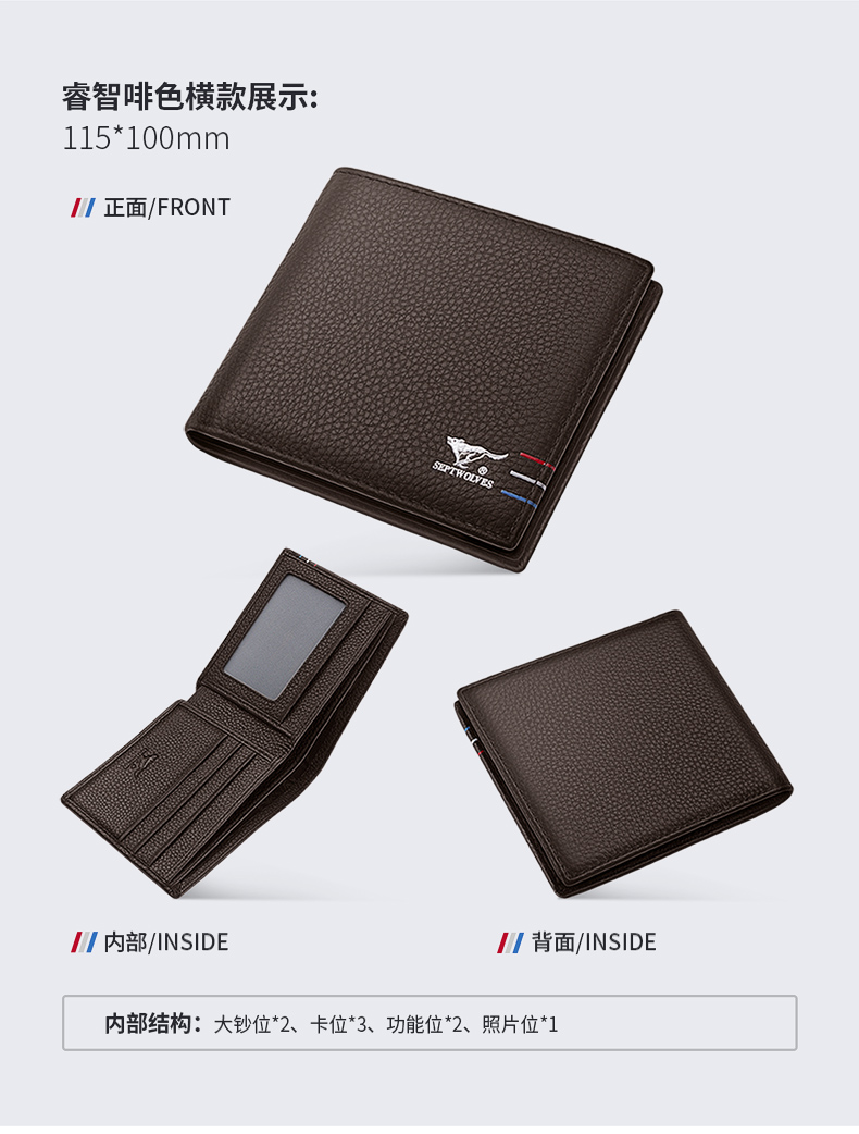 七匹狼男士真皮短款钱包2025新年合集新款头层牛皮卡包青年皮夹子