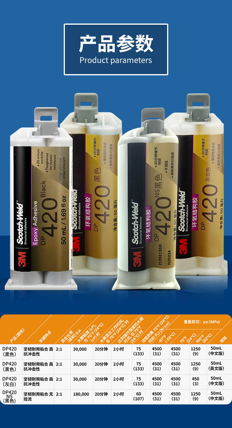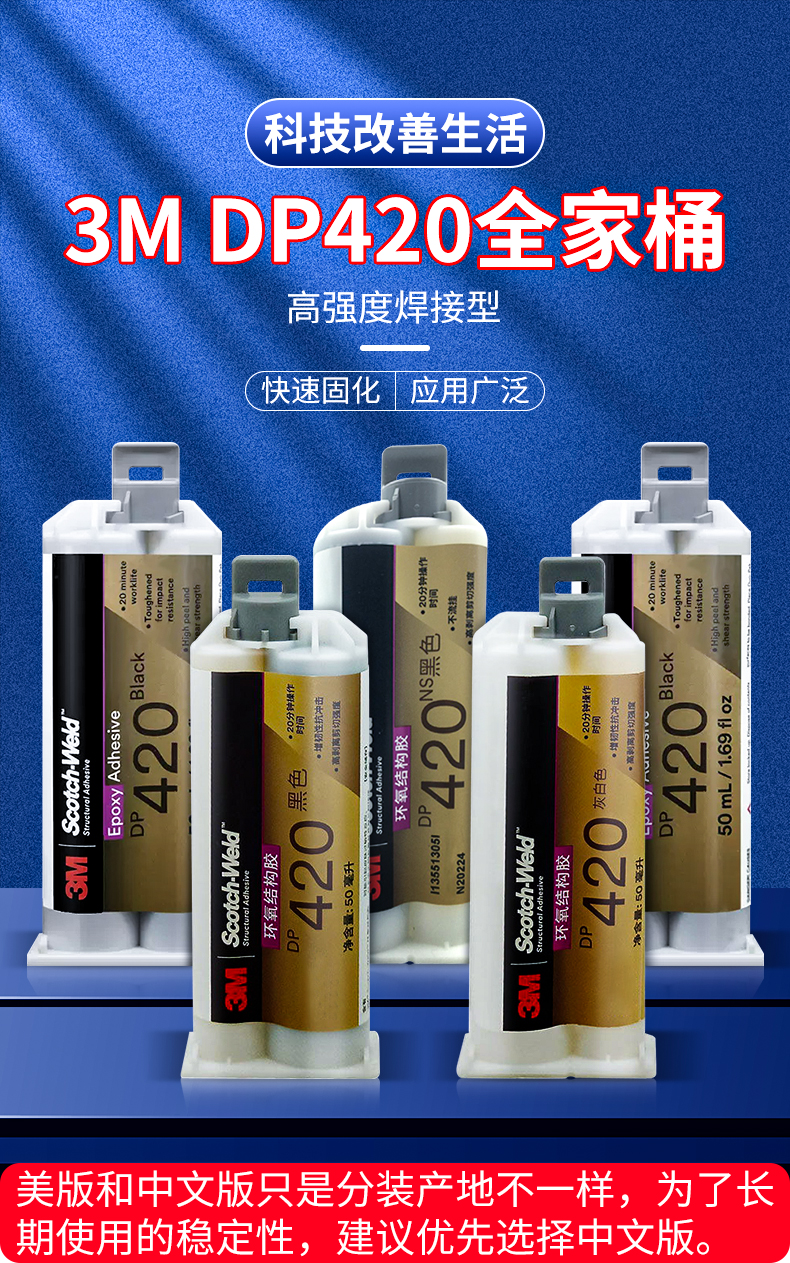 3m胶水DP420NS黑色环氧树脂双组份耐高温粘金属铁铝碳纤维塑料陶瓷高强度ab结构胶多功能强力粘合剂dp420胶水