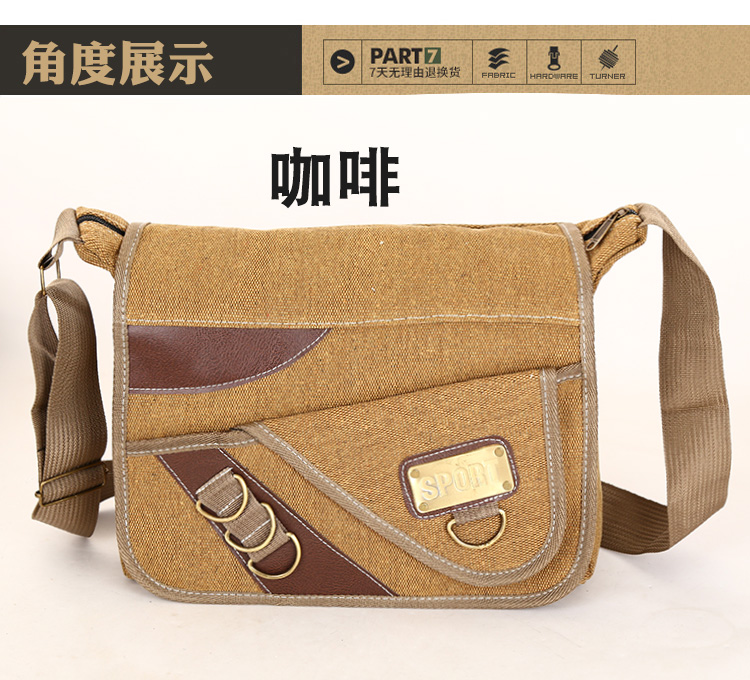 纯帆布单肩包复古斜挎包男士背包大容量旅行包男包公文包文件袋