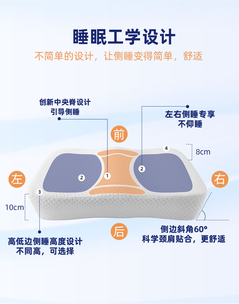 添眠侧睡枕Z10 加厚加高枕头深睡枕分区枕环保护颈椎打呼噜打鼾