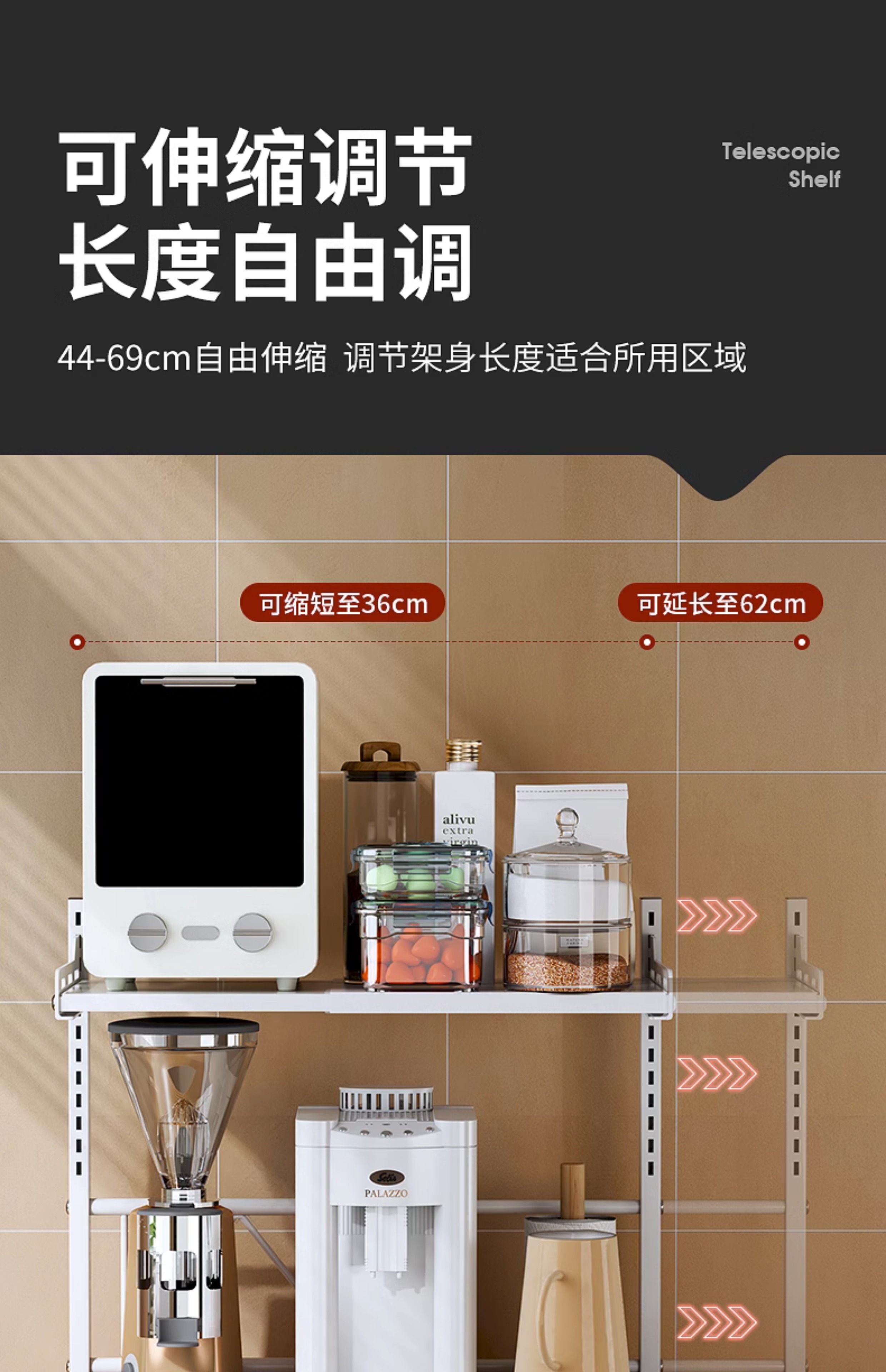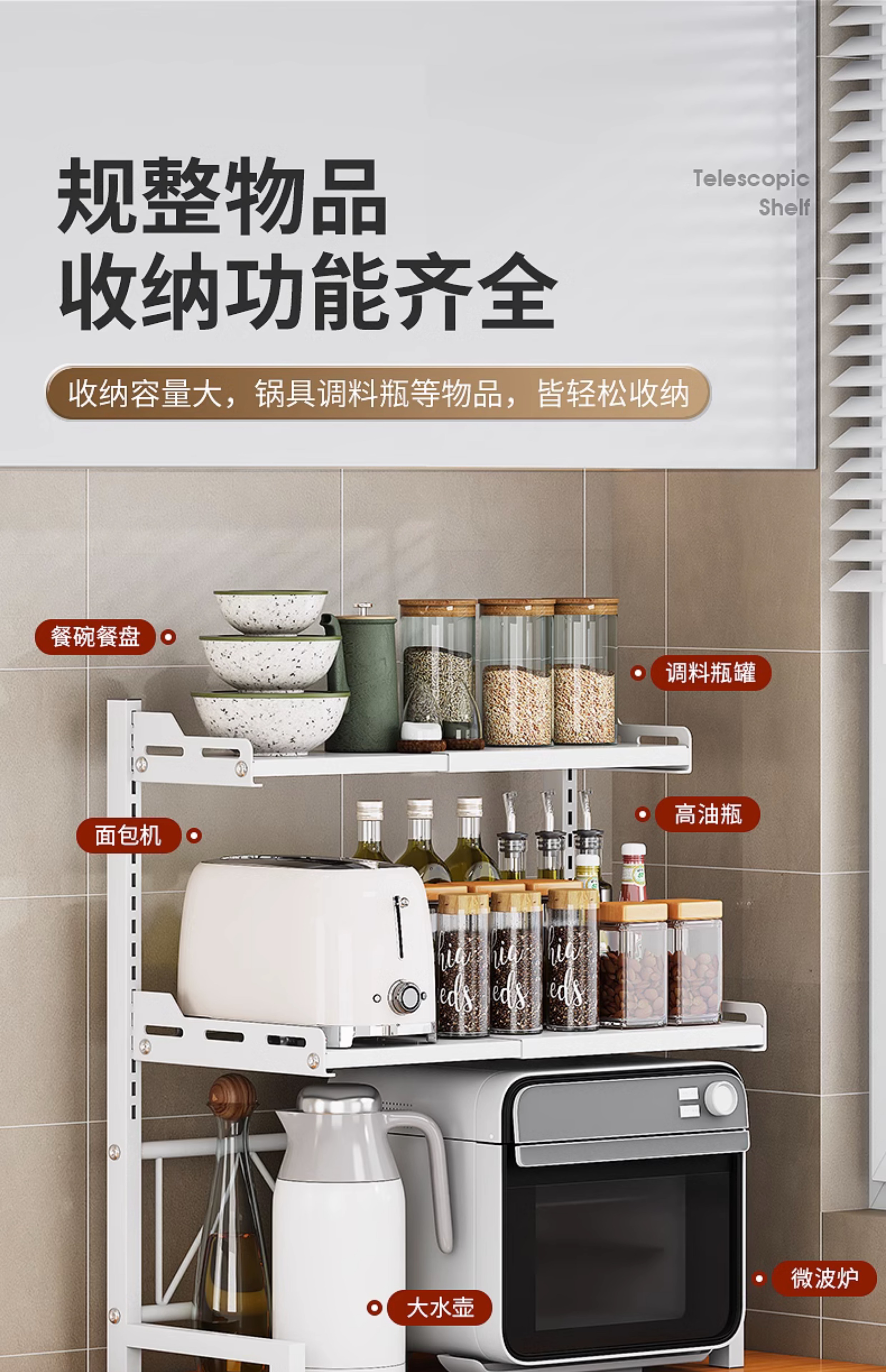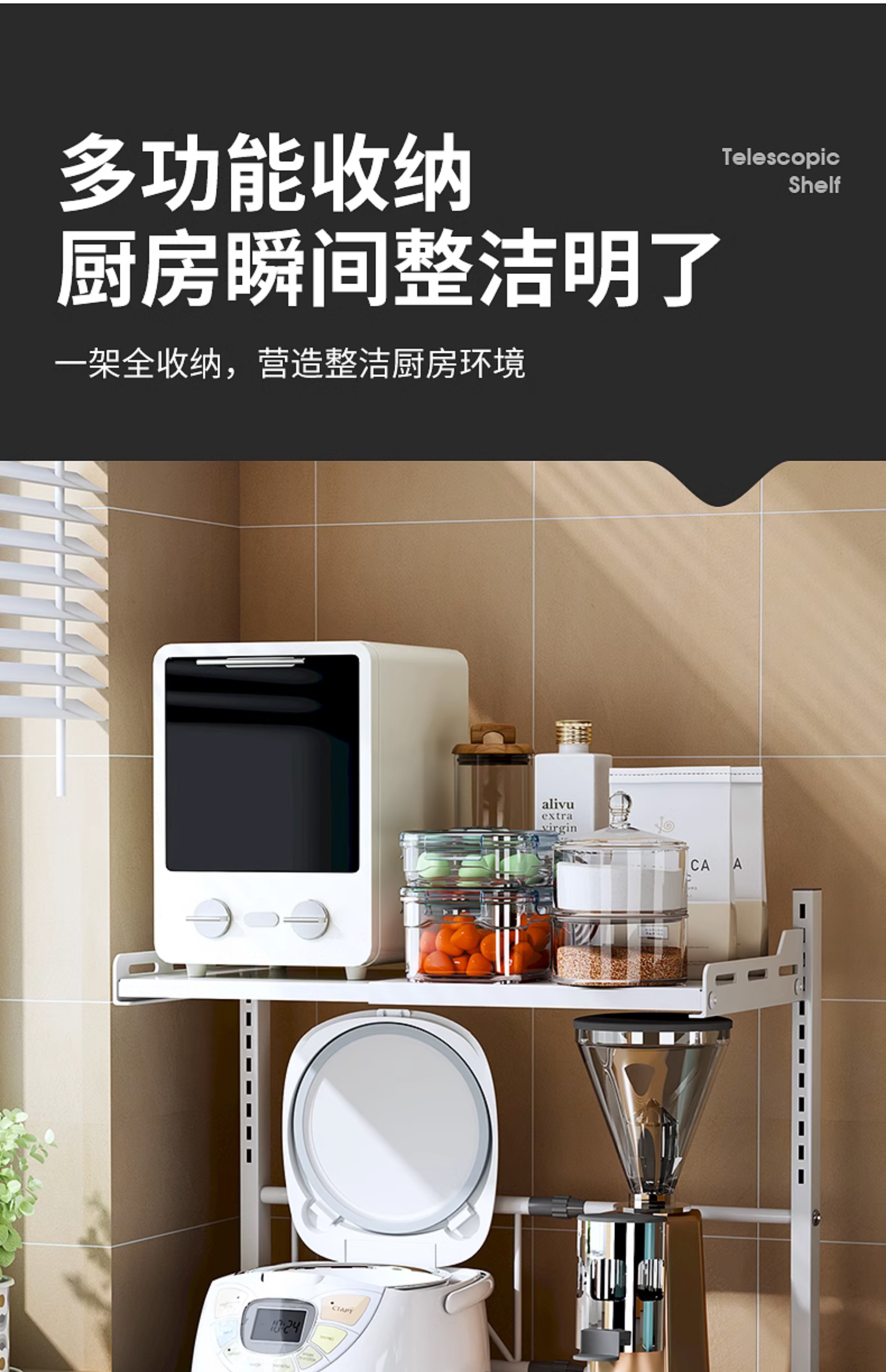 厨房微波炉烤箱置物架电饭煲空气炸锅收纳架台面伸缩双层家用架子