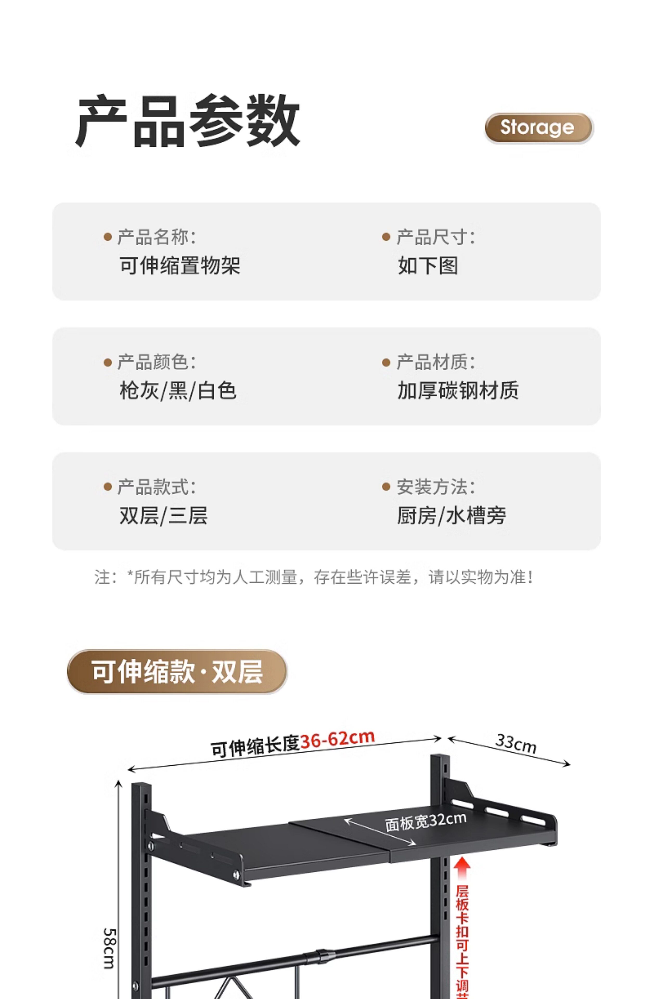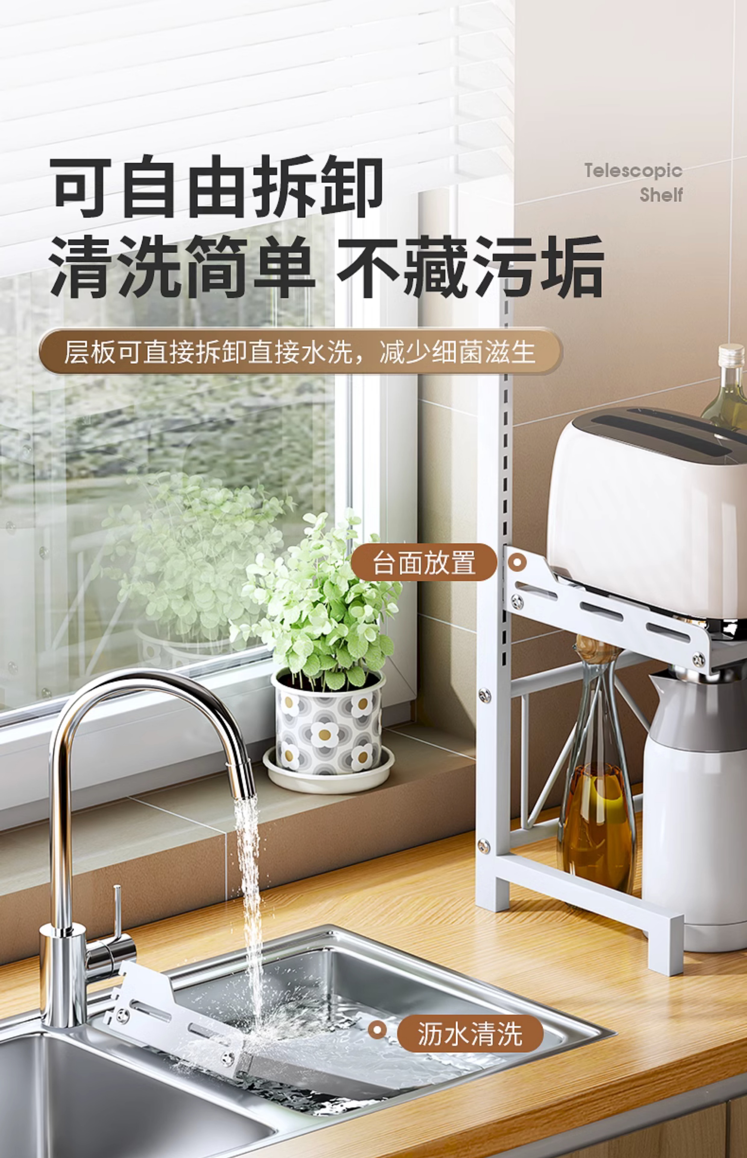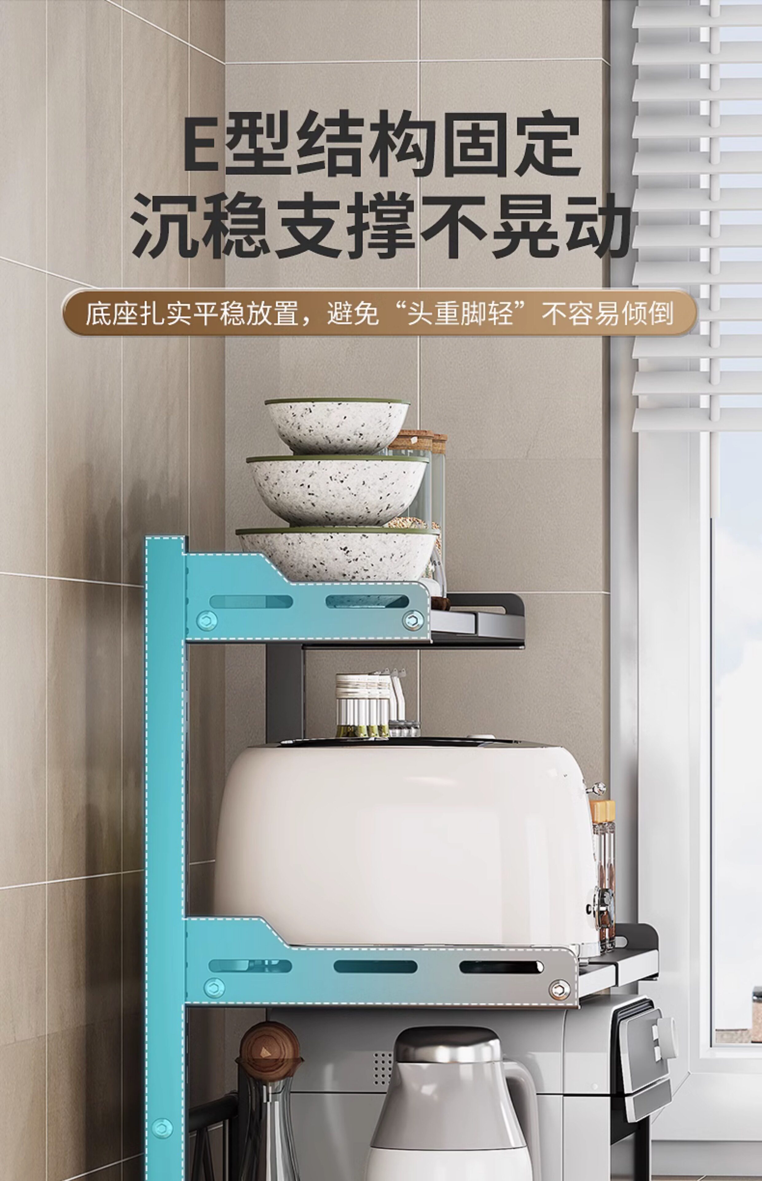 厨房微波炉烤箱置物架电饭煲空气炸锅收纳架台面伸缩双层家用架子