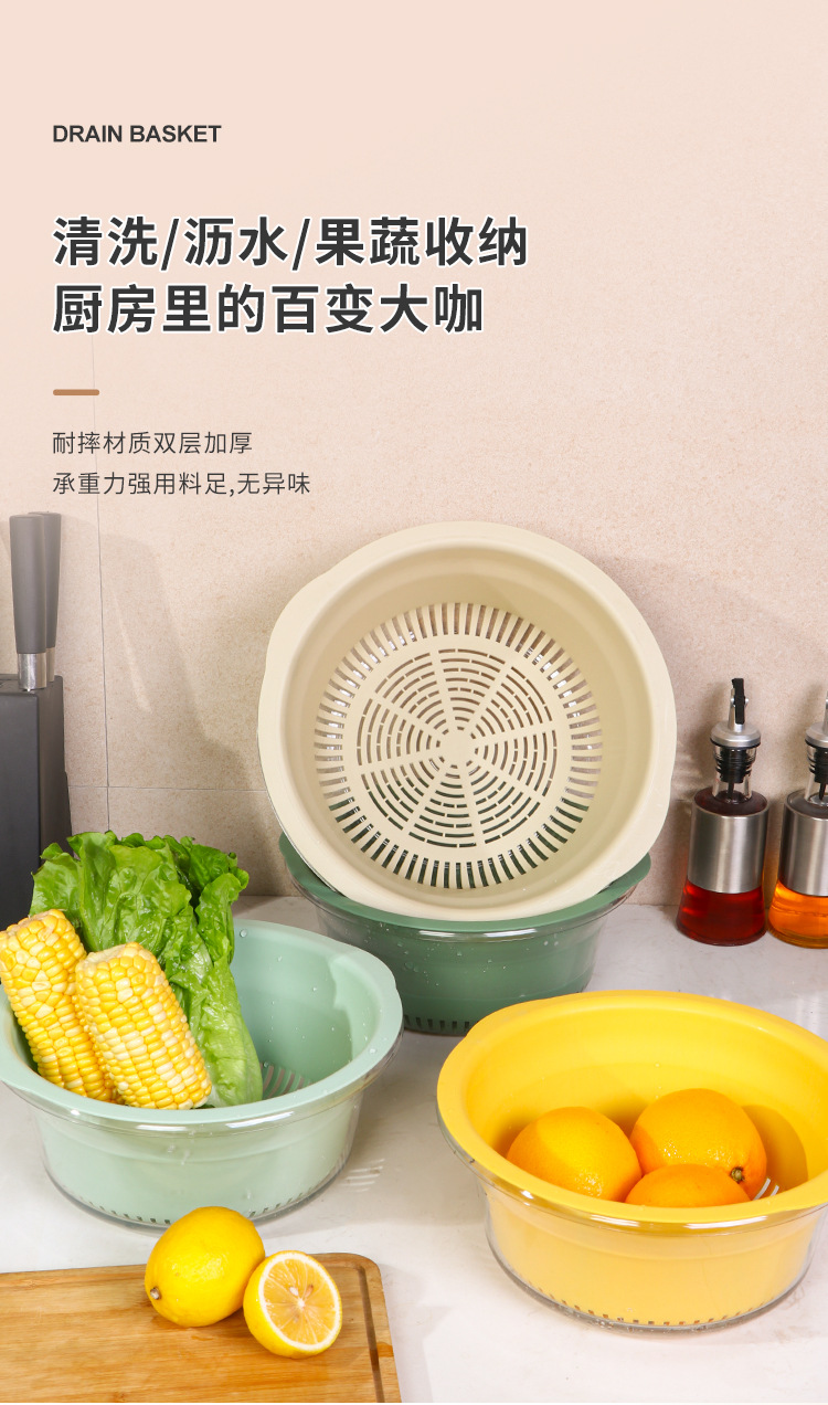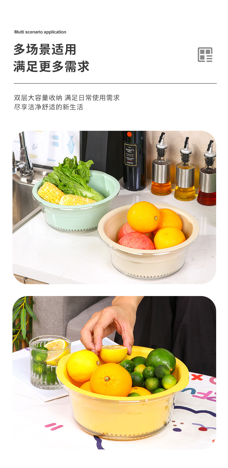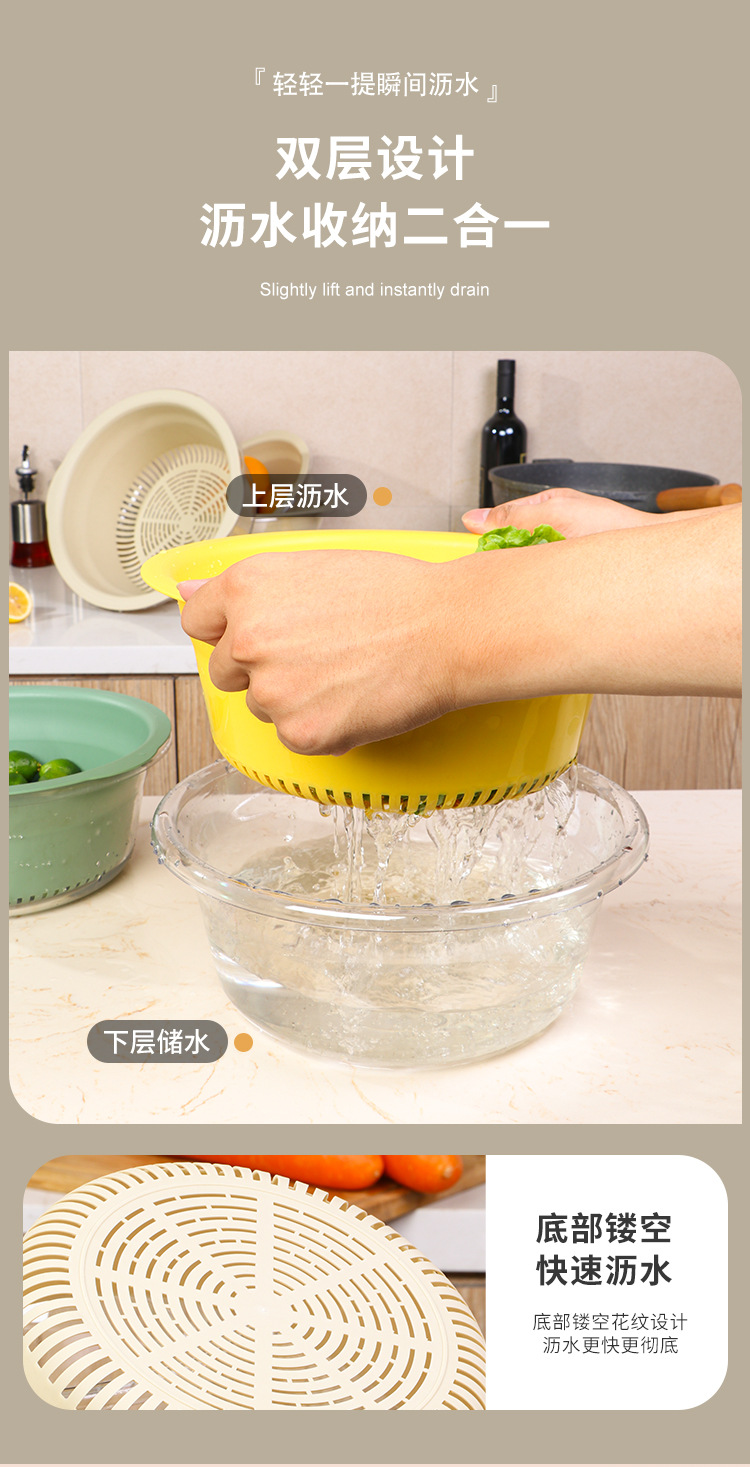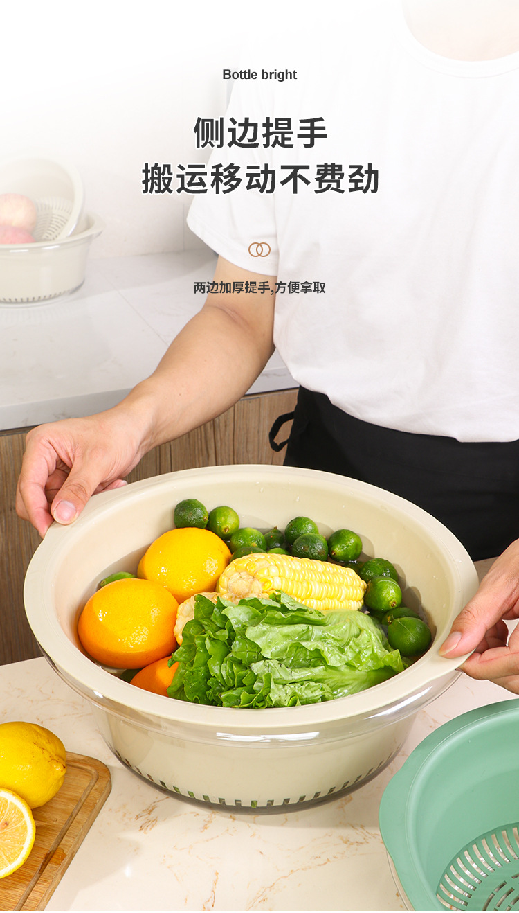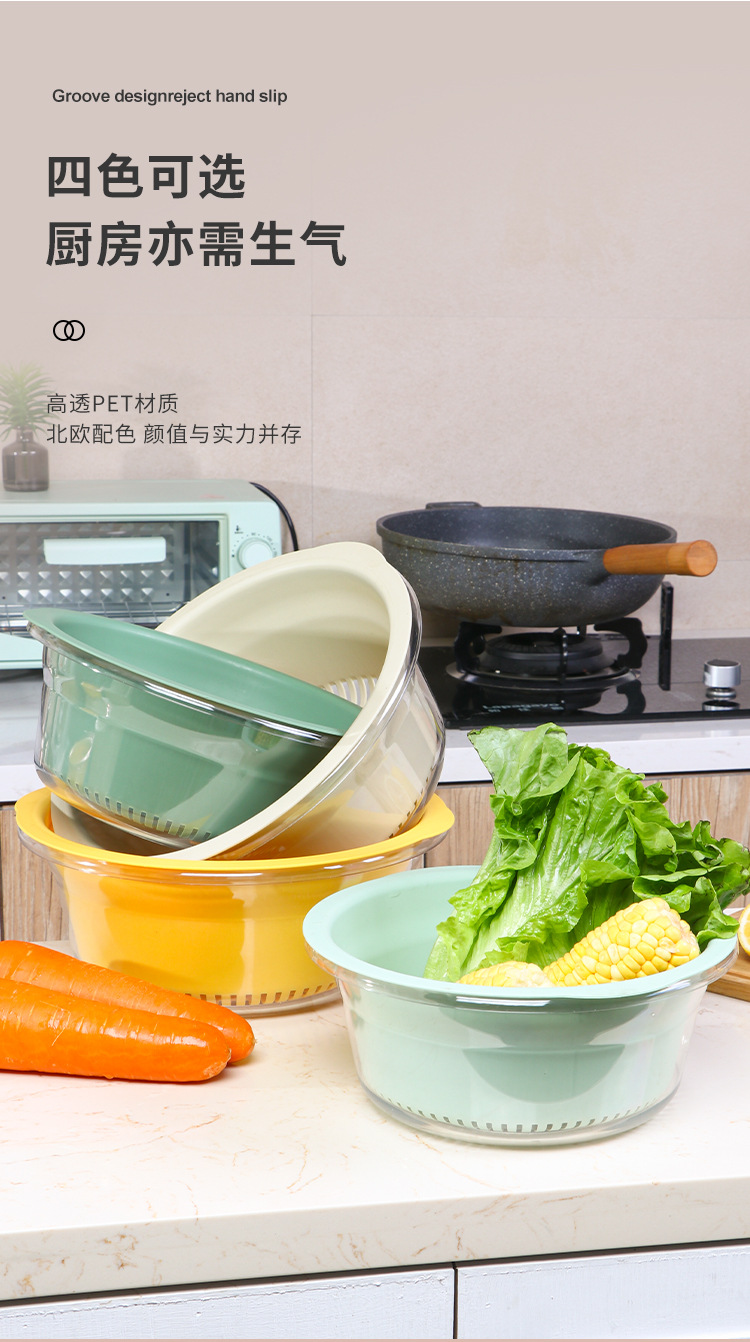 双层洗菜盆家用厨房沥水篮洗菜篮透明洗水果神器滤水水果盘滴水篮