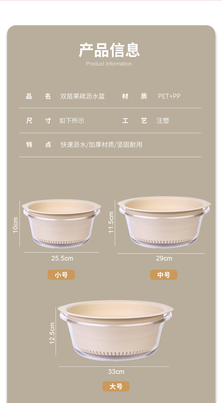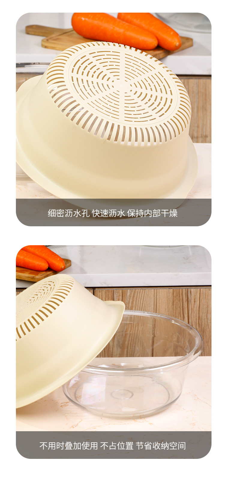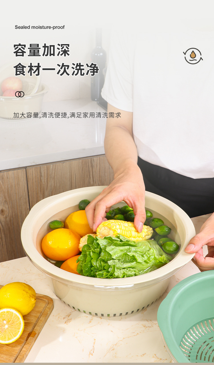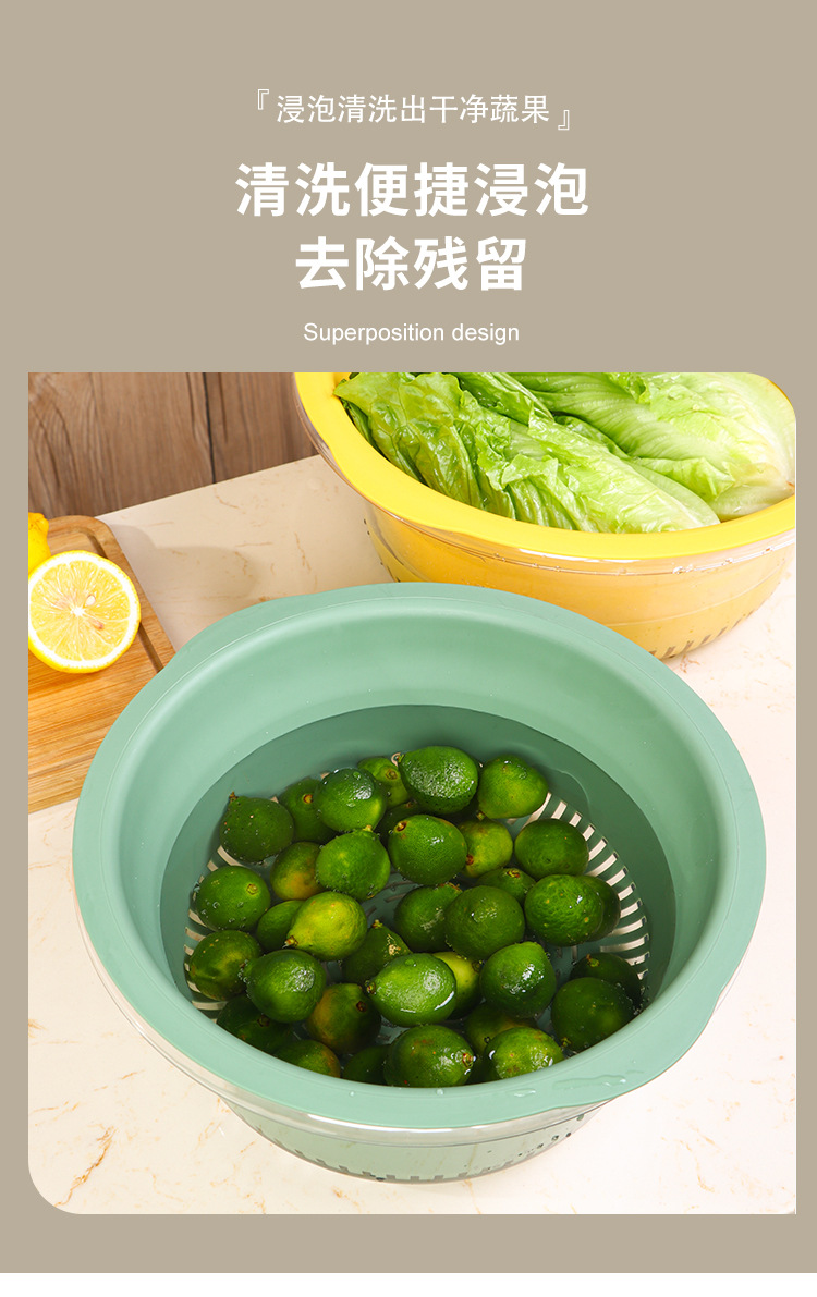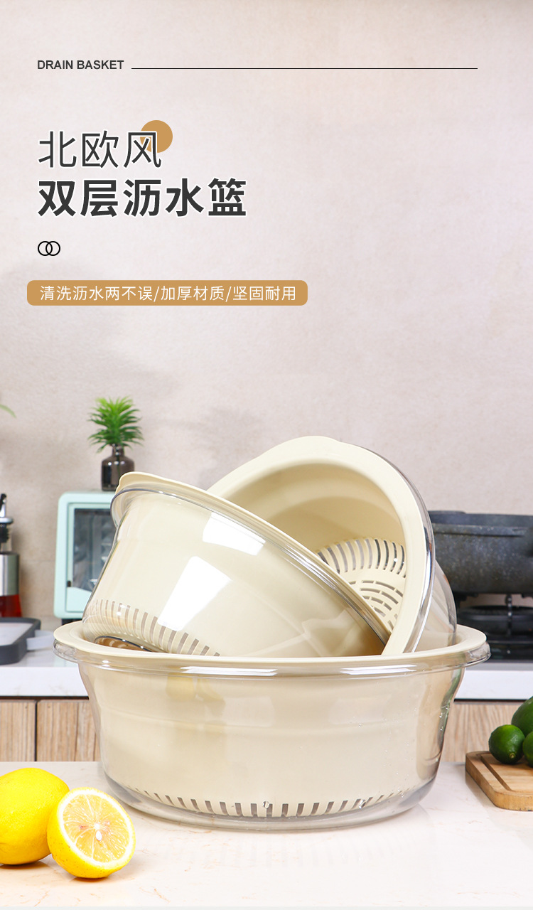 双层洗菜盆家用厨房沥水篮洗菜篮透明洗水果神器滤水水果盘滴水篮