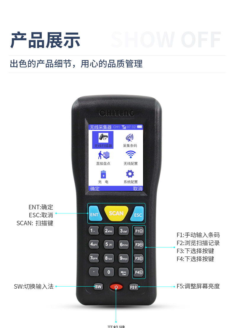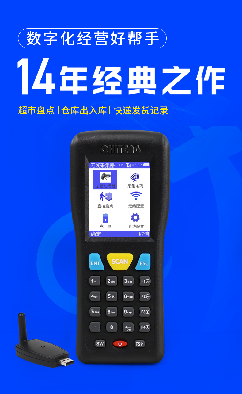 驰腾CT1000盘点机无线扫描枪条码数据采集器二维pda手持终端ERP扫码枪进销存图书仓库出入库超市物流快递巴枪