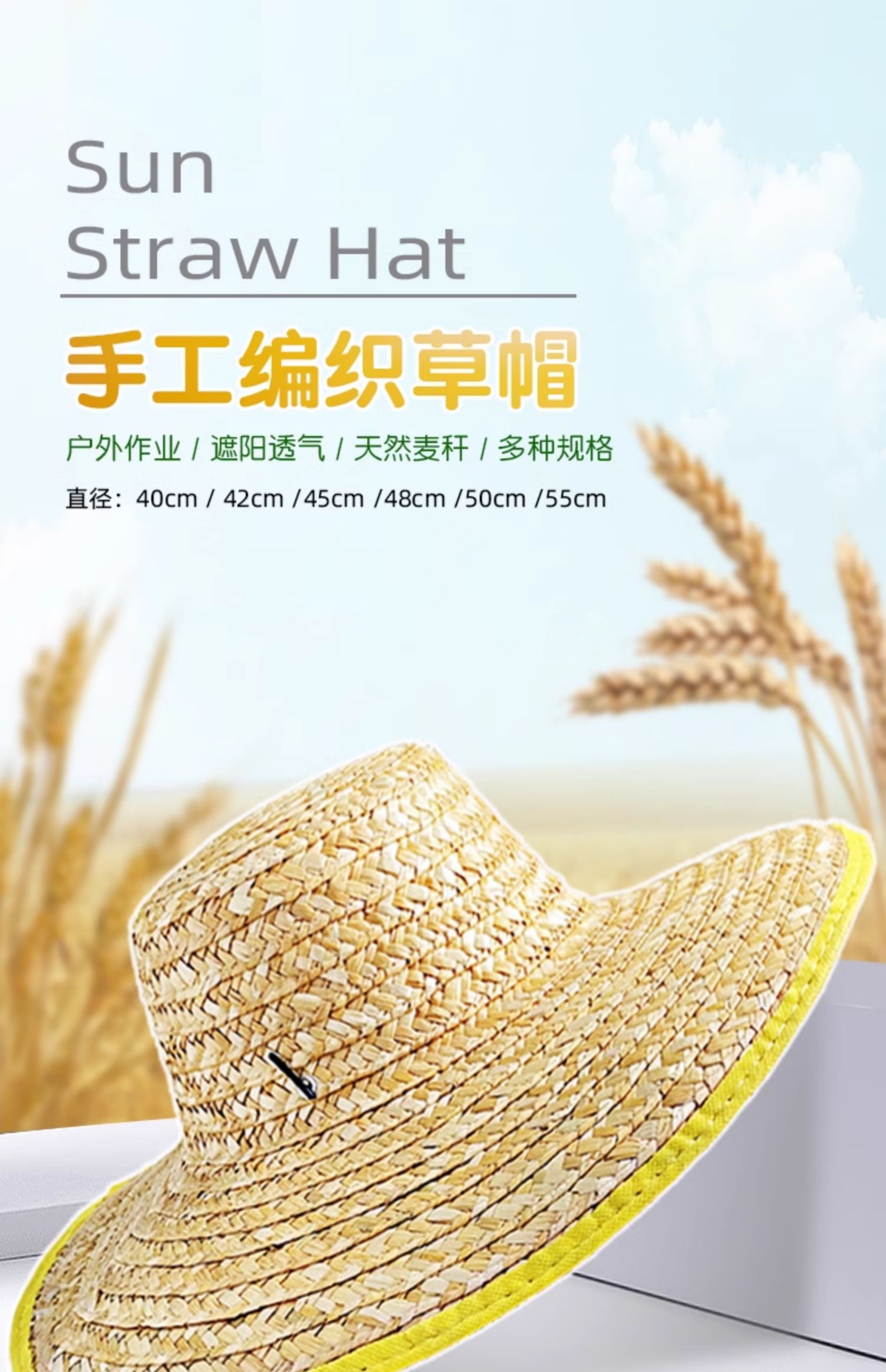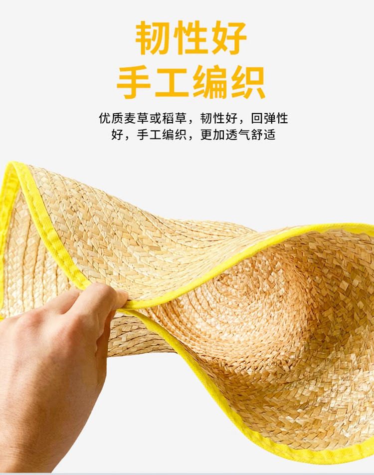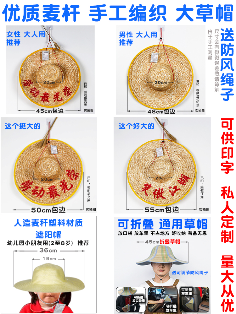 农民工麦秆草帽工地钓鱼户外大沿男田园遮阳防晒女大檐太阳帽定制