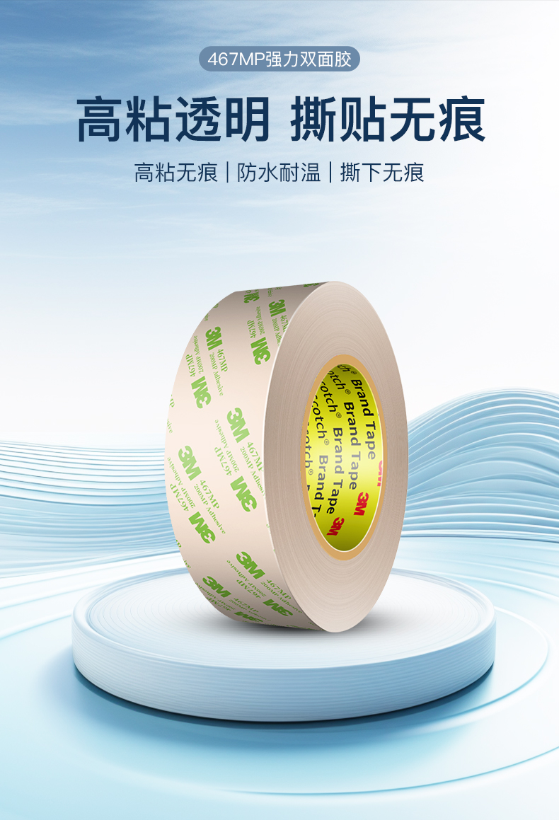 3M467MP双面胶 透明双面胶带无基材强力超薄耐高温胶 办公室用品