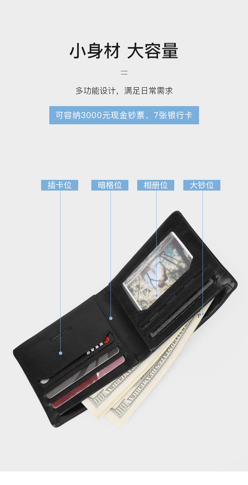 皮尔卡丹男士钱包新款真皮头层牛皮钱票夹简约商务短款多卡位皮夹