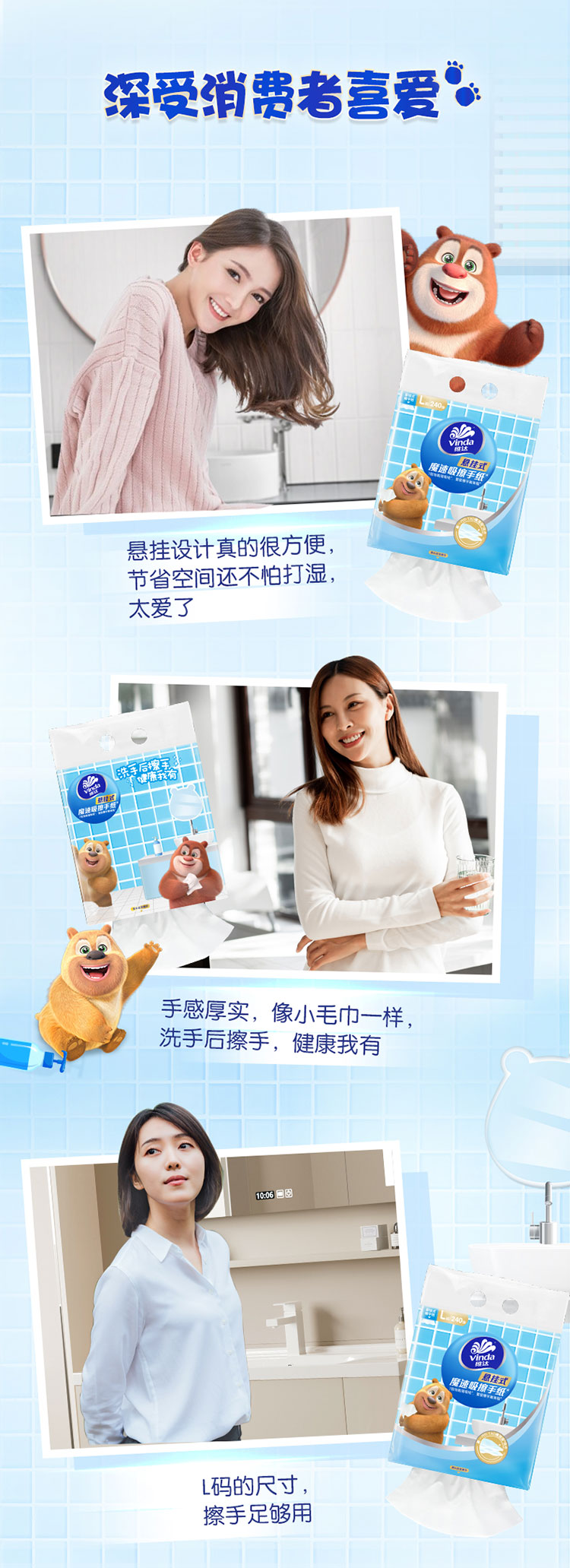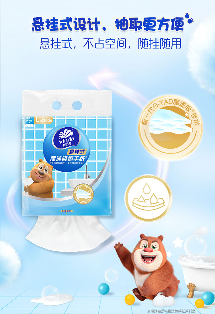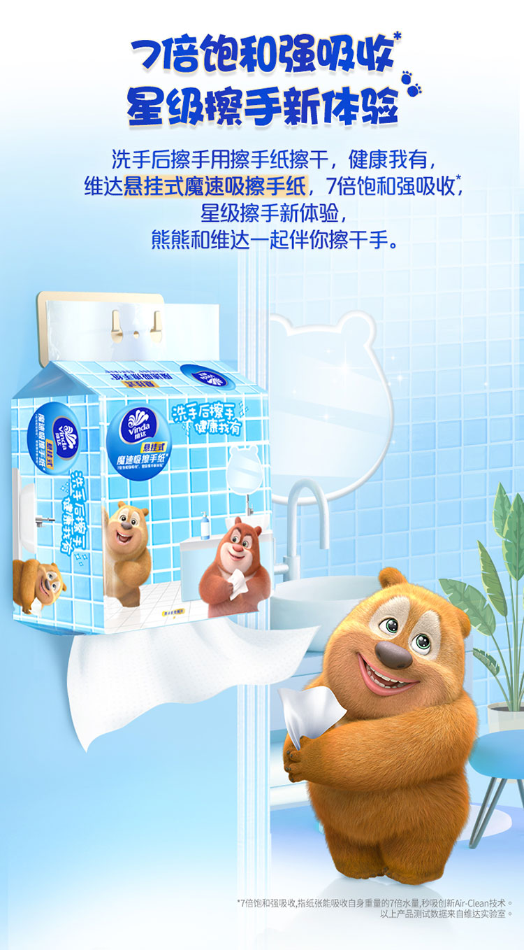 维达悬挂式抽纸熊出没联名大包魔速吸擦手纸卫生纸
