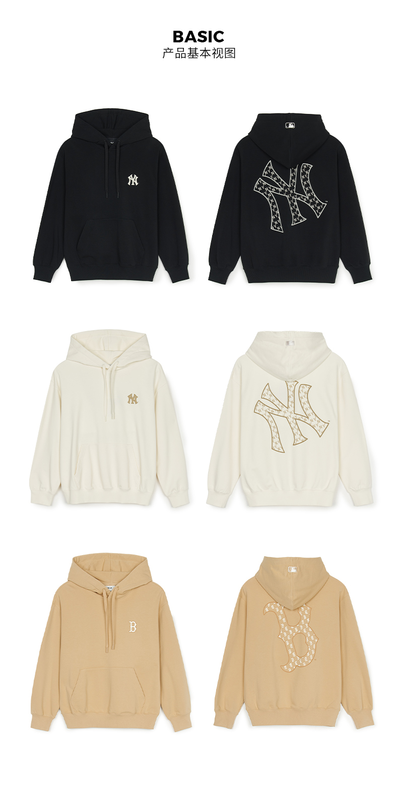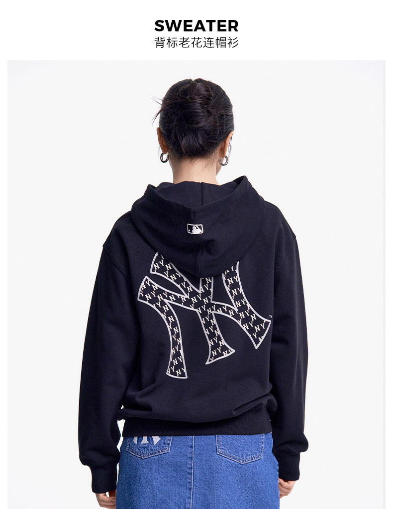 MLB官方男女情侣时尚背标老花大LOGO连帽套头卫衣25春夏新款HDM02