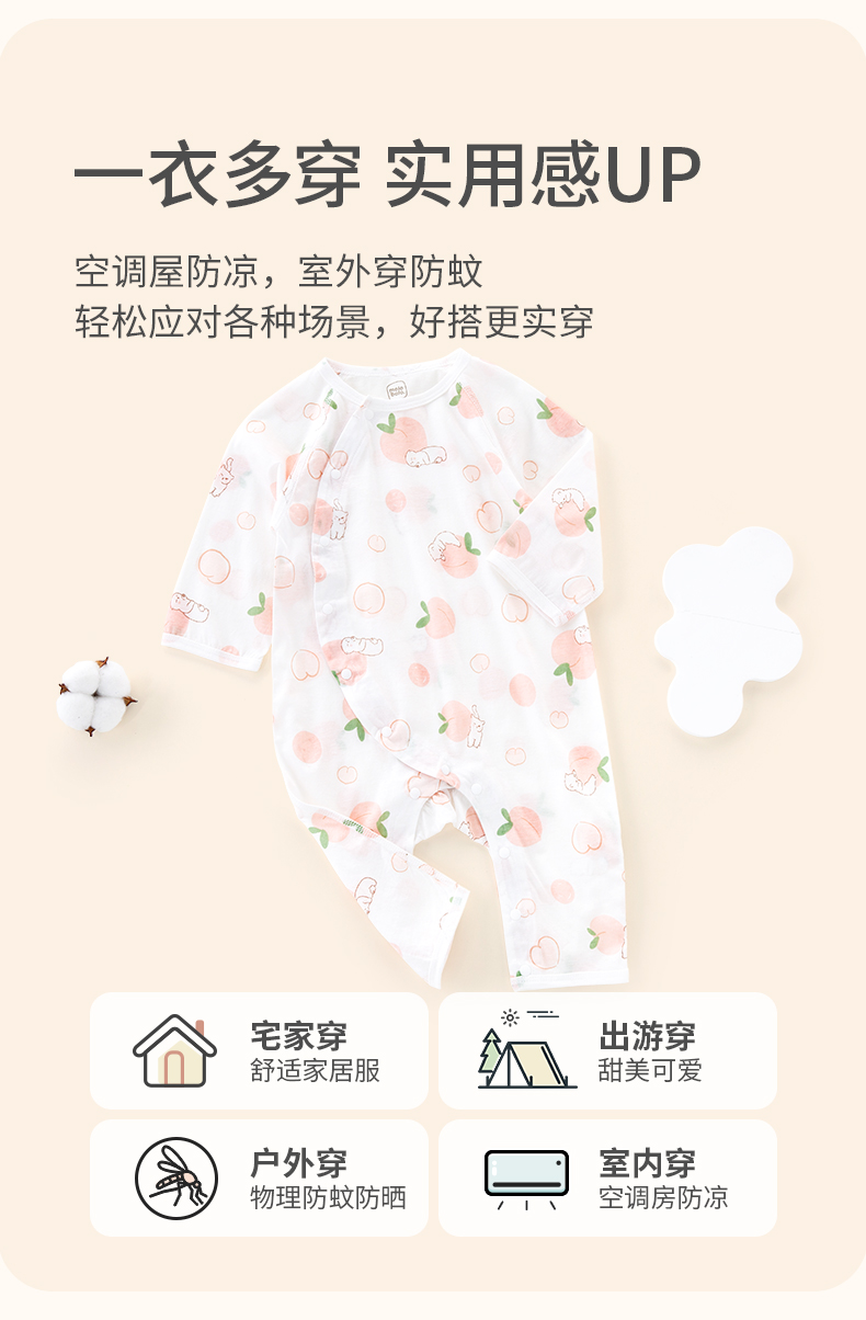 麦拉贝拉婴儿连体衣纯棉夏季长袖空调服可爱女宝宝甜美哈衣爬服装