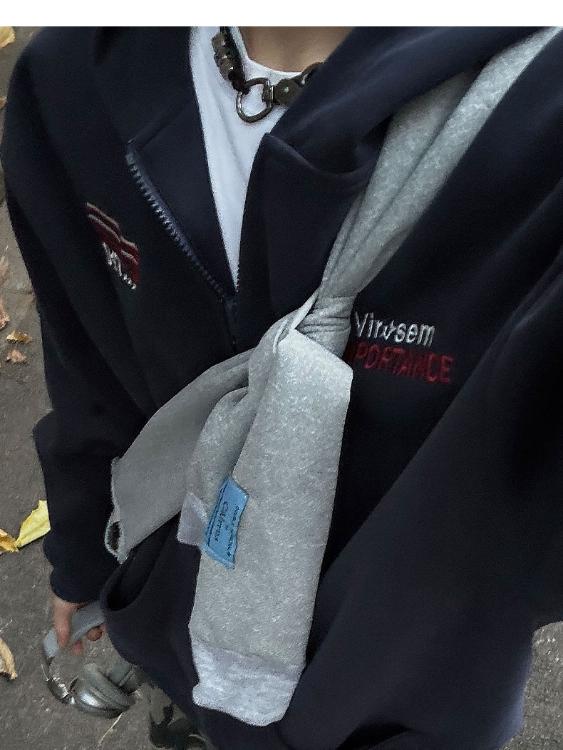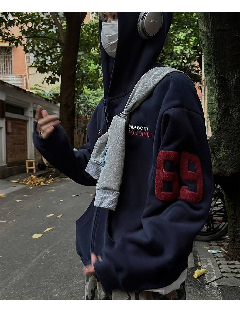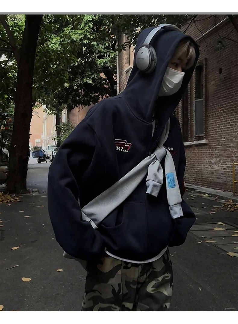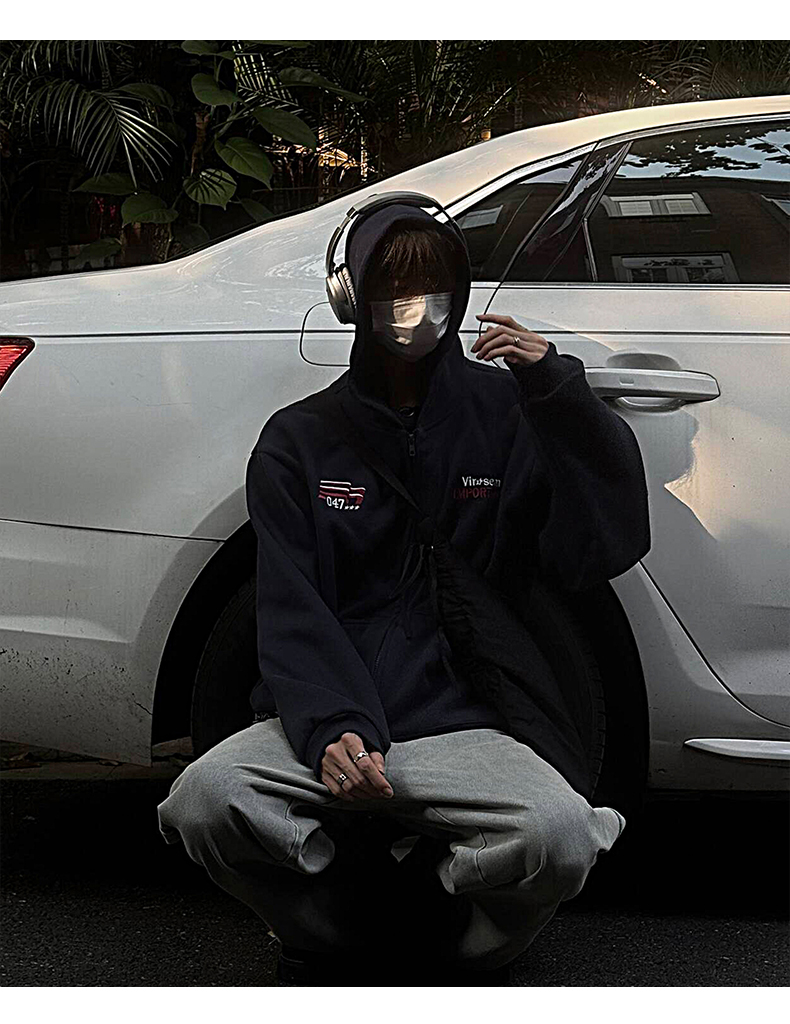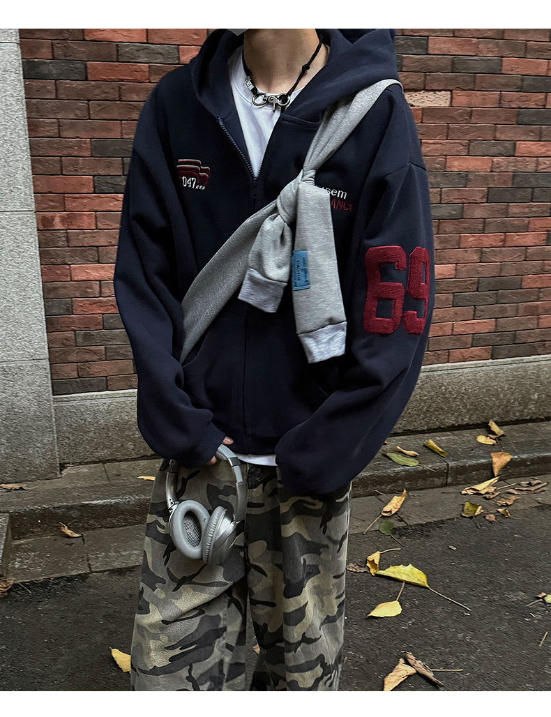 雀斑男装重磅刺绣开衫帽衫春秋季国潮牌美式复古运动连帽卫衣外套