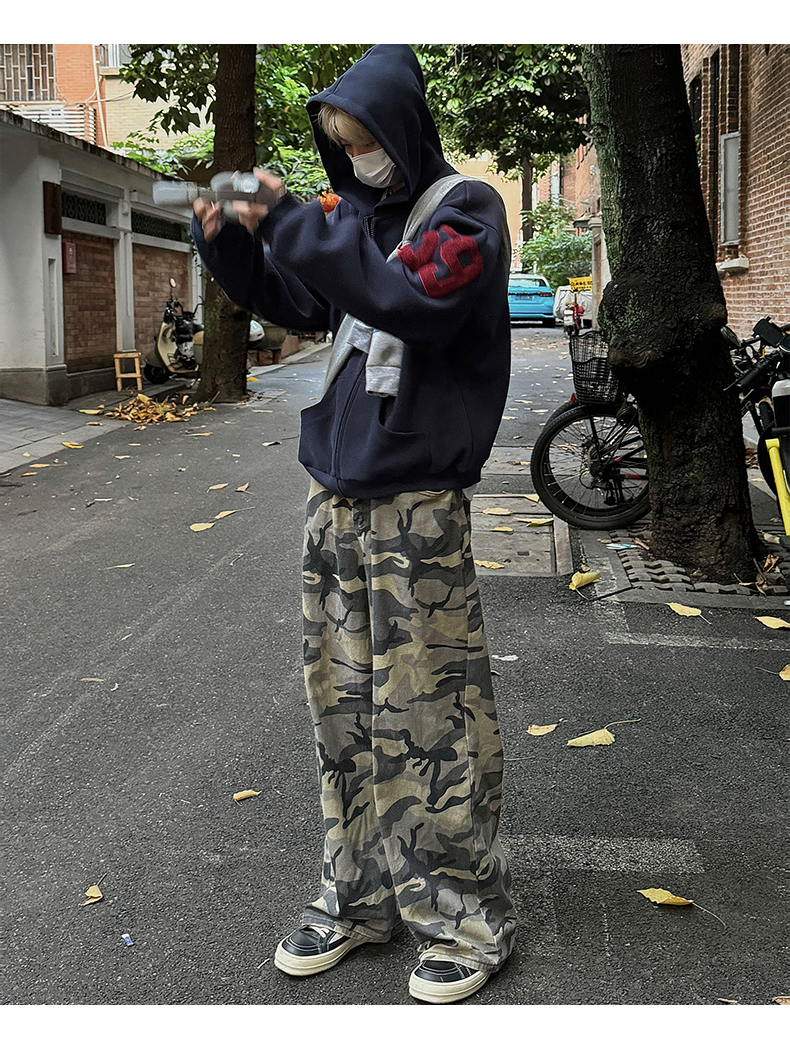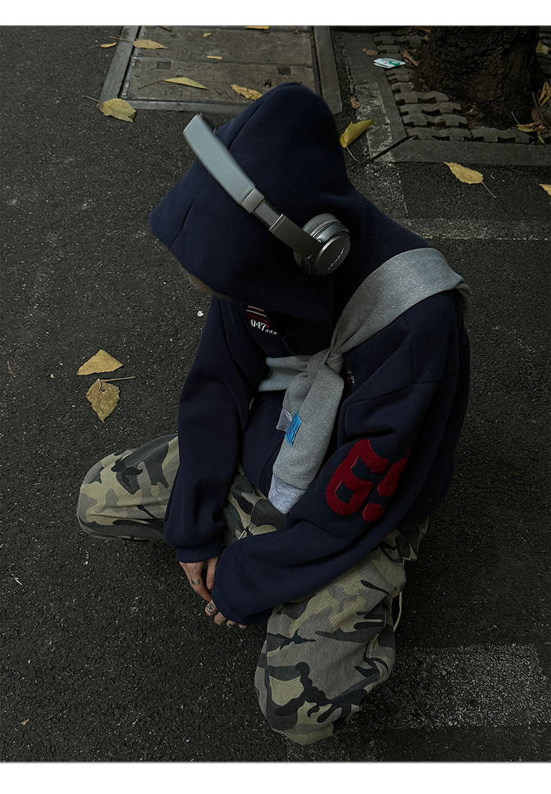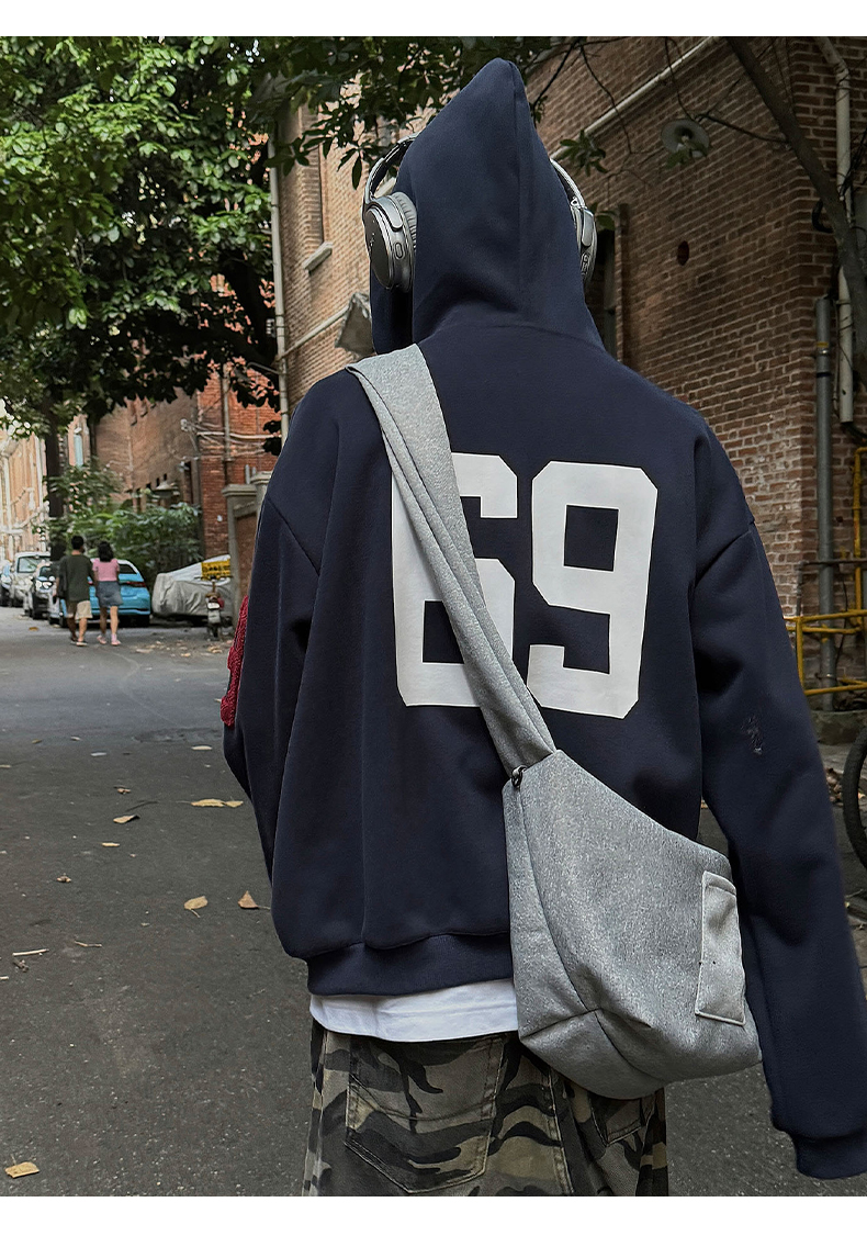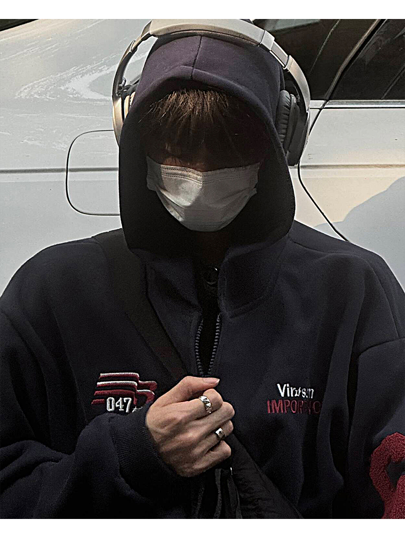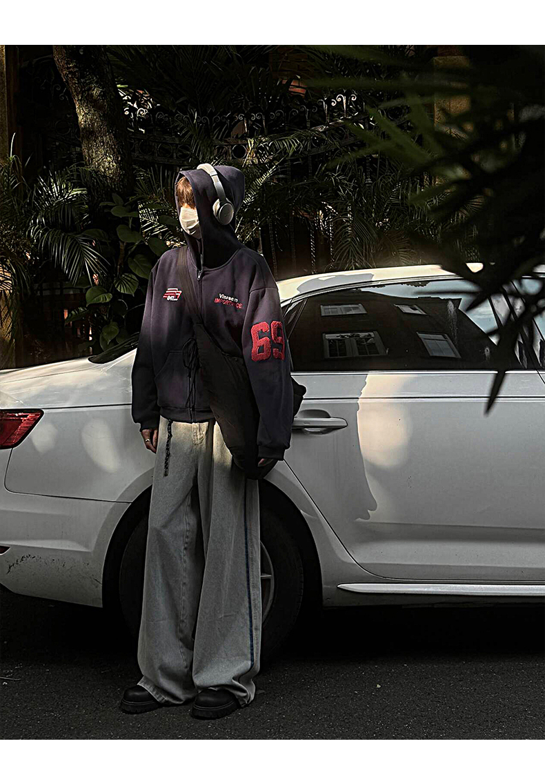 雀斑男装重磅刺绣开衫帽衫春秋季国潮牌美式复古运动连帽卫衣外套