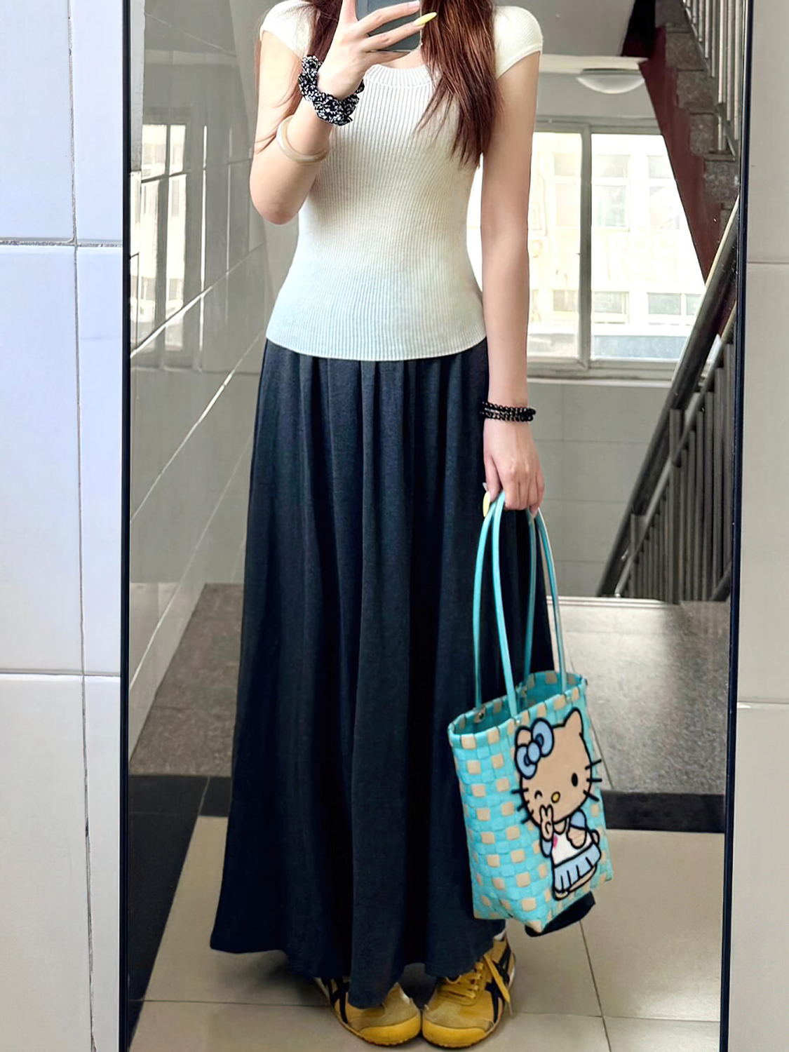 灰色垂感半身裙女夏薄款胖妹妹mm高腰遮胯显瘦a字长裙大摆遛弯裙