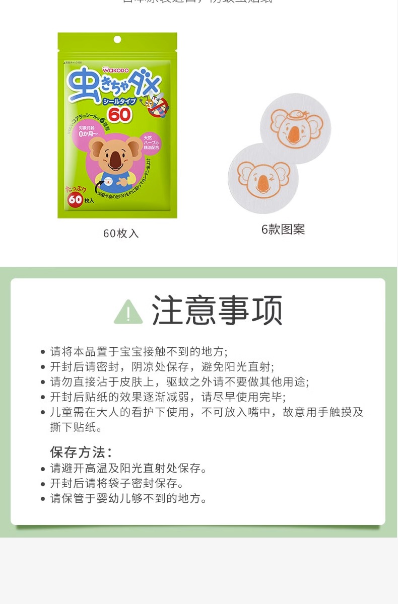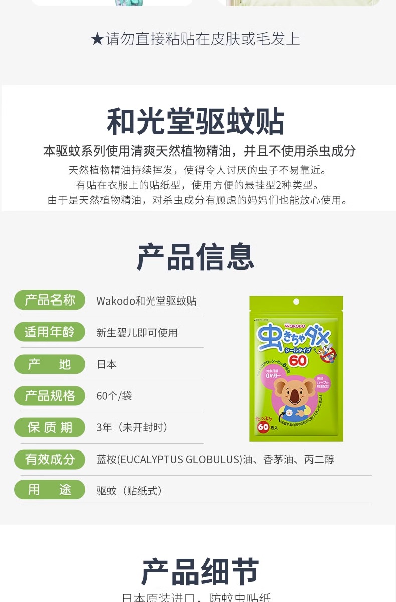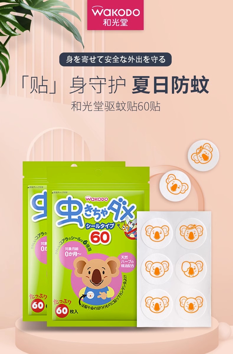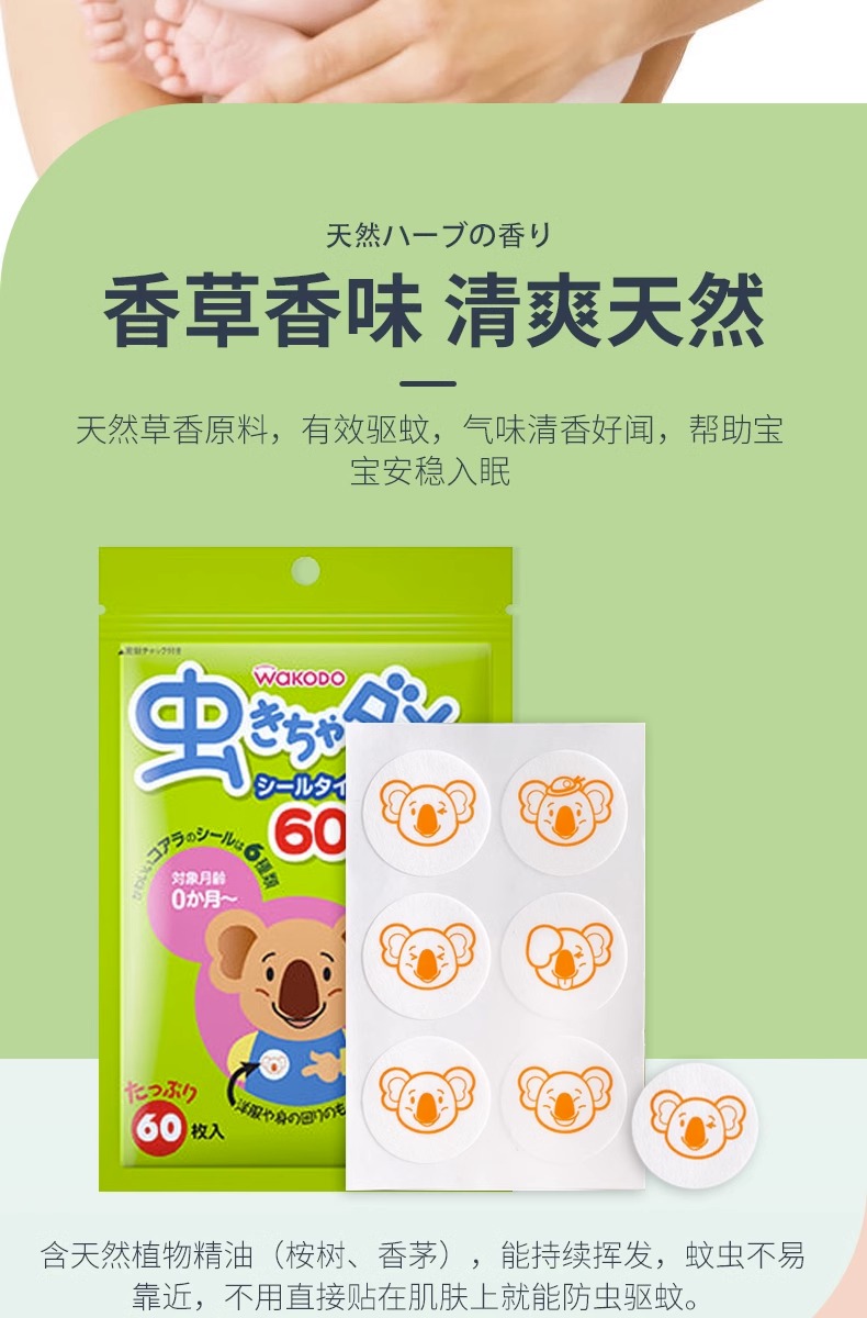 日本和光堂驱蚊贴新生婴儿童宝宝专用用品成人天然植物防蚊贴60枚