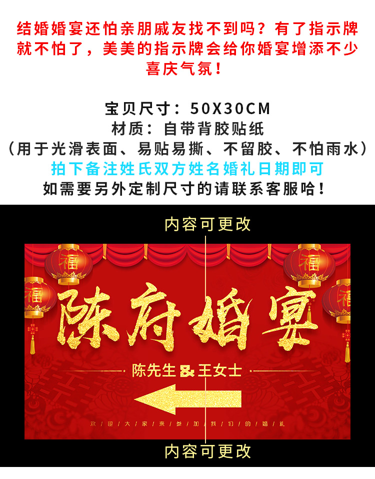 定制贴纸结婚欧式婚宴指示牌贴纸婚礼婚庆用品酒店指路牌喜字贴