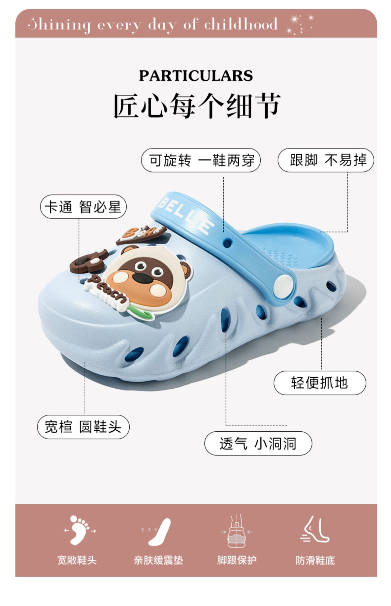 百丽童鞋儿童透气洞洞鞋夏季男女童外穿沙滩鞋居家宝宝软底拖凉鞋