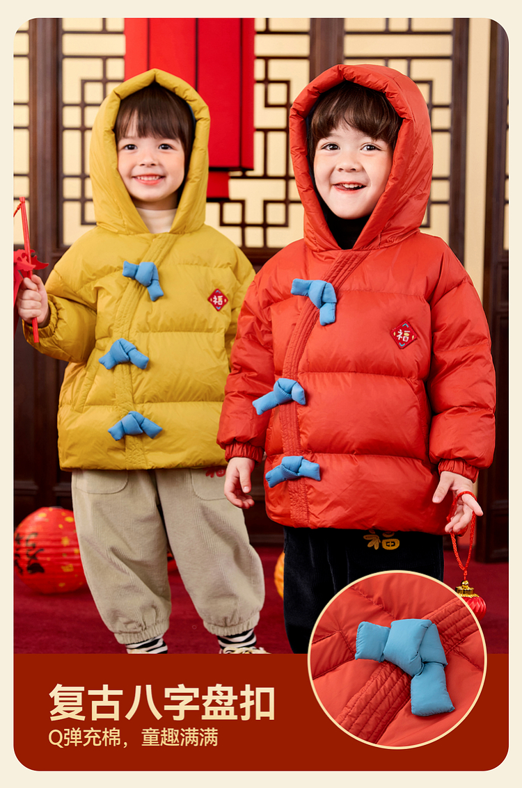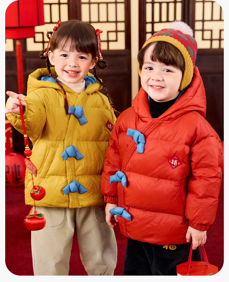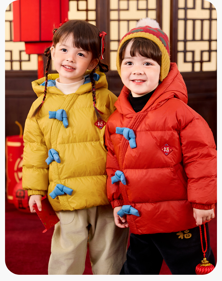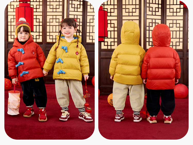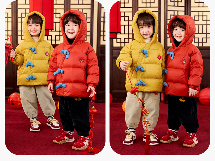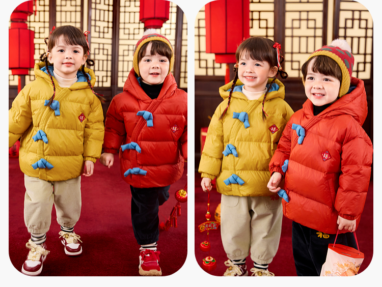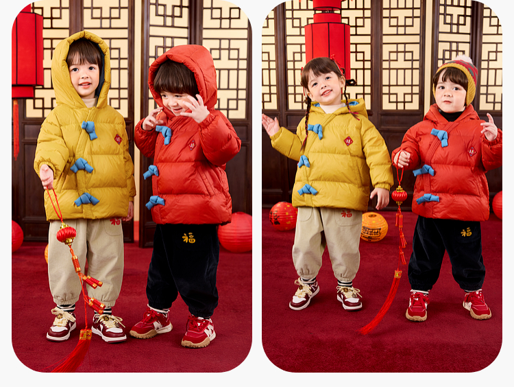 嘟嘟家儿童新年拜年服男童羽绒服冬季宝宝红色喜庆唐装女童过年装