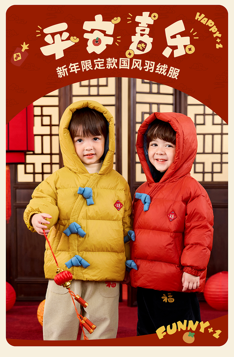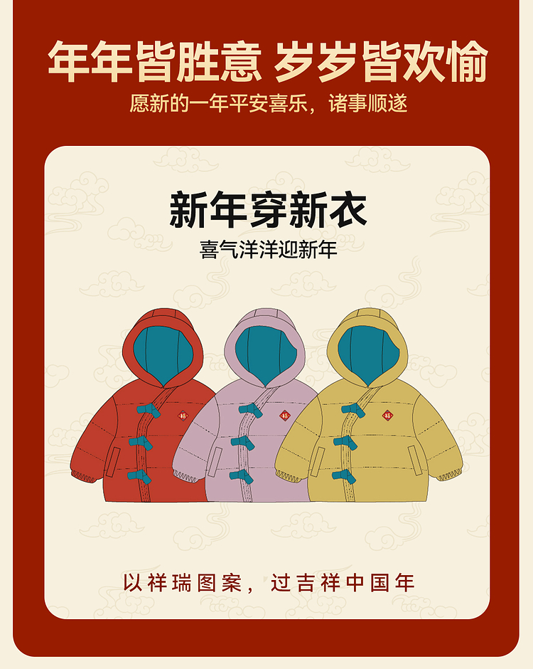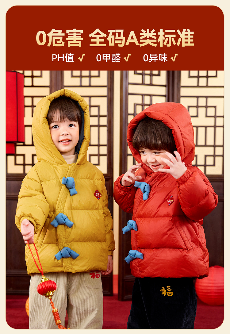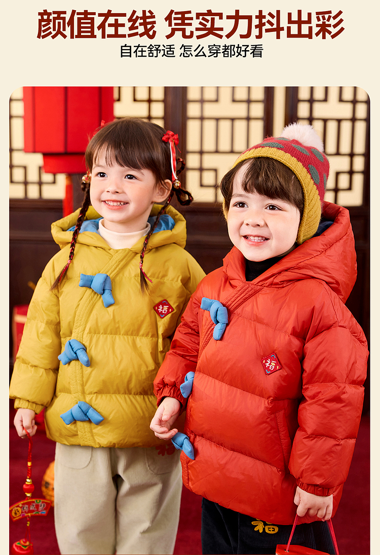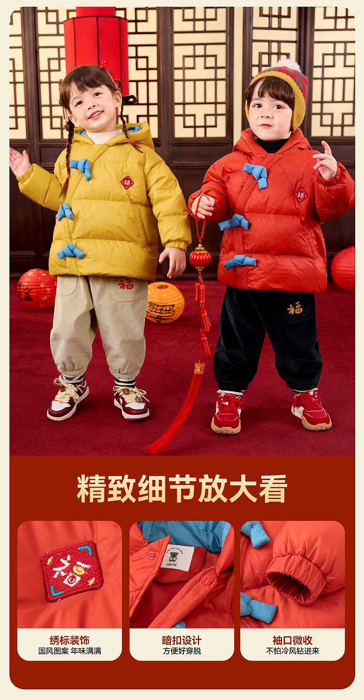 嘟嘟家儿童新年拜年服男童羽绒服冬季宝宝红色喜庆唐装女童过年装