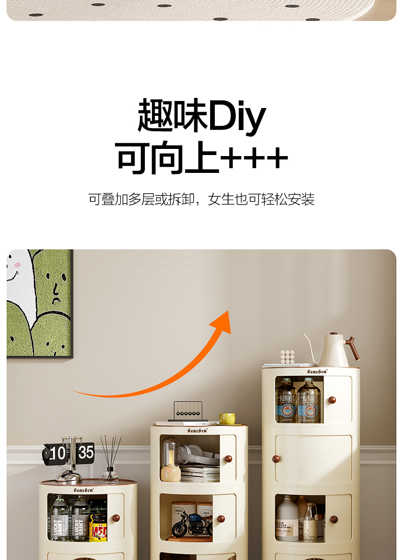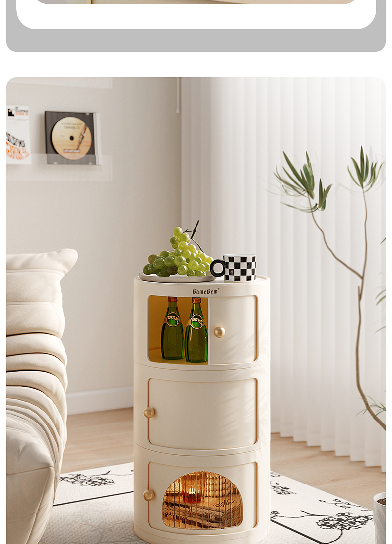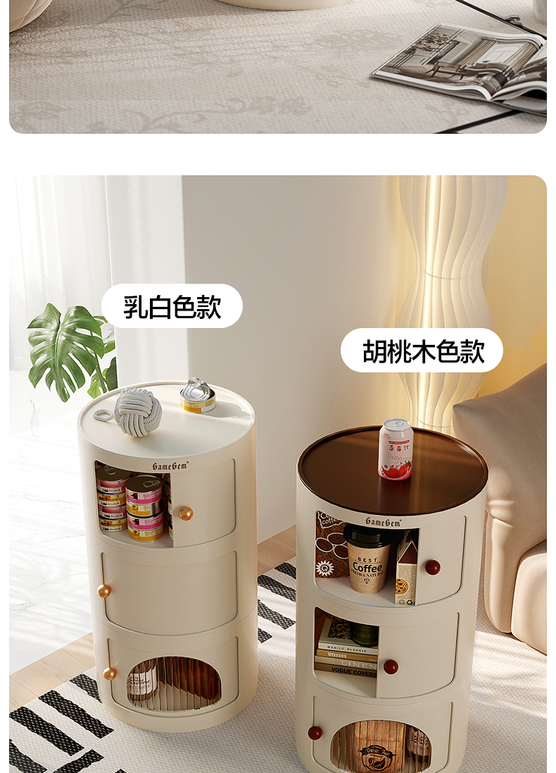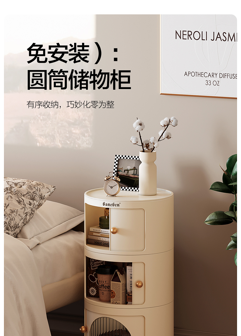 格美居收纳柜床头柜多层卧室圆形柜子置物架网红ins简约储物柜