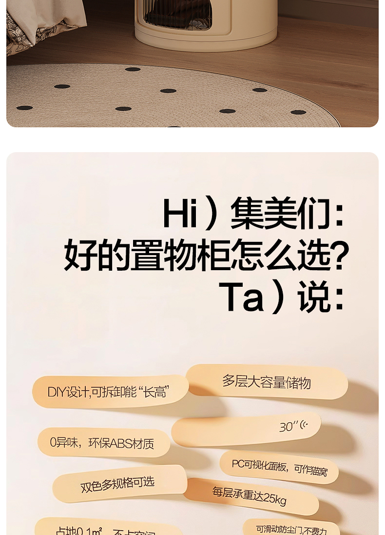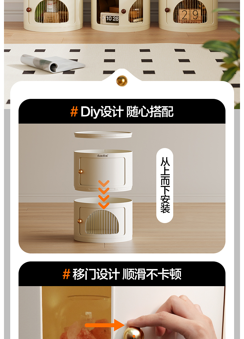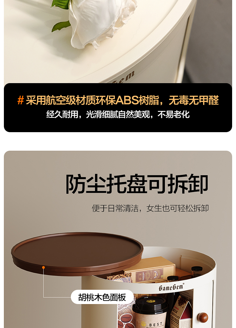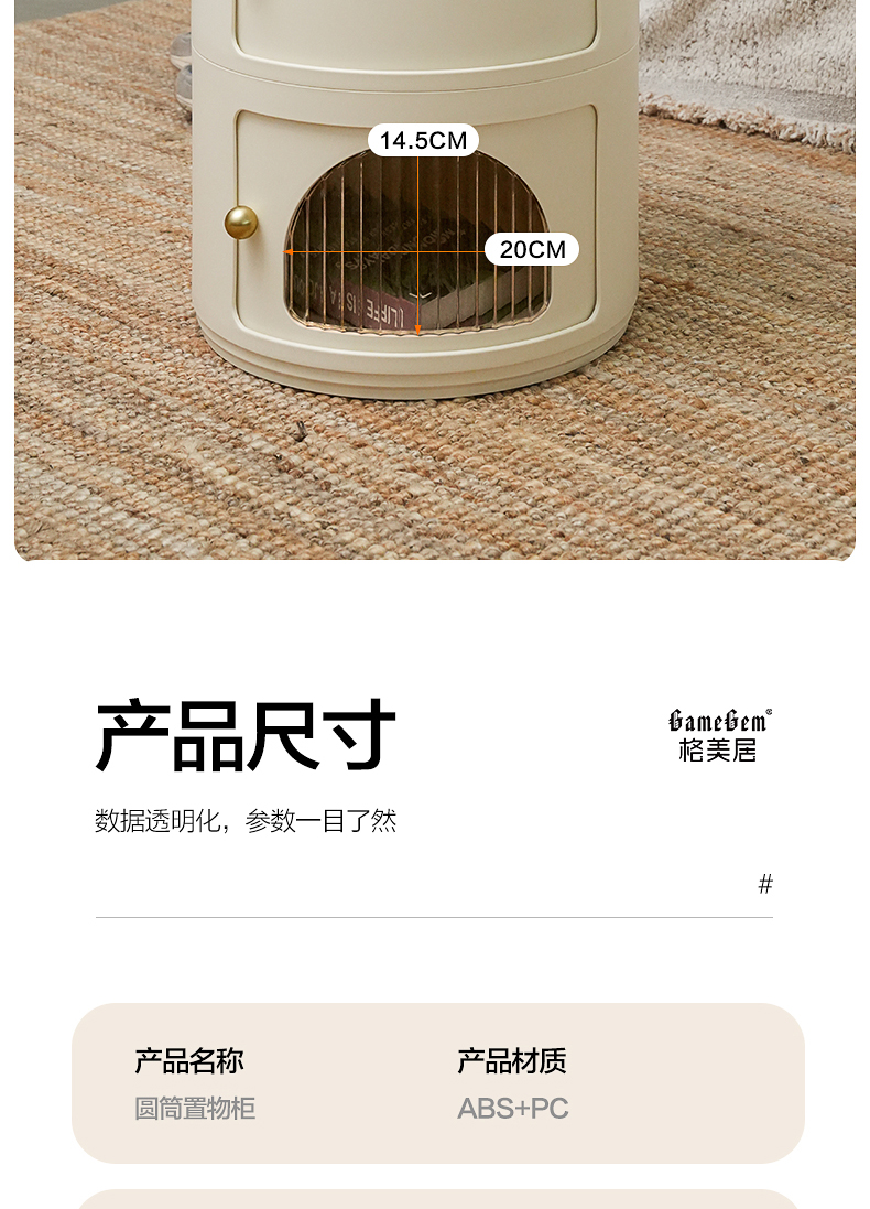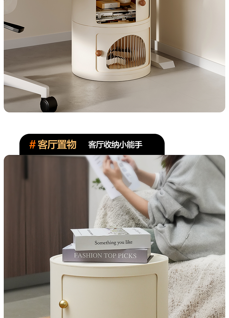 格美居收纳柜床头柜多层卧室圆形柜子置物架网红ins简约储物柜