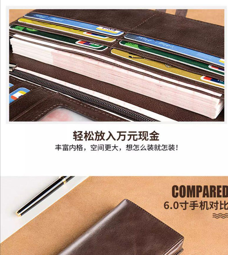 新款真皮质感钱包大容量多卡位长款手拿包卡包一体男款皮夹钱夹女