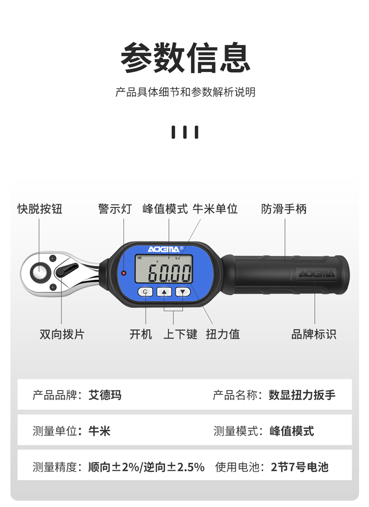 进口台湾ADEMA艾德玛数显扭力扳手预置可调式力矩扳手汽车维修