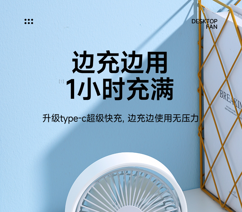 酷盟桌面风扇小型宿舍usb小风扇静音办公室桌上学生迷你充电款户外超长续航强力制冷家用小电风扇便携式随身