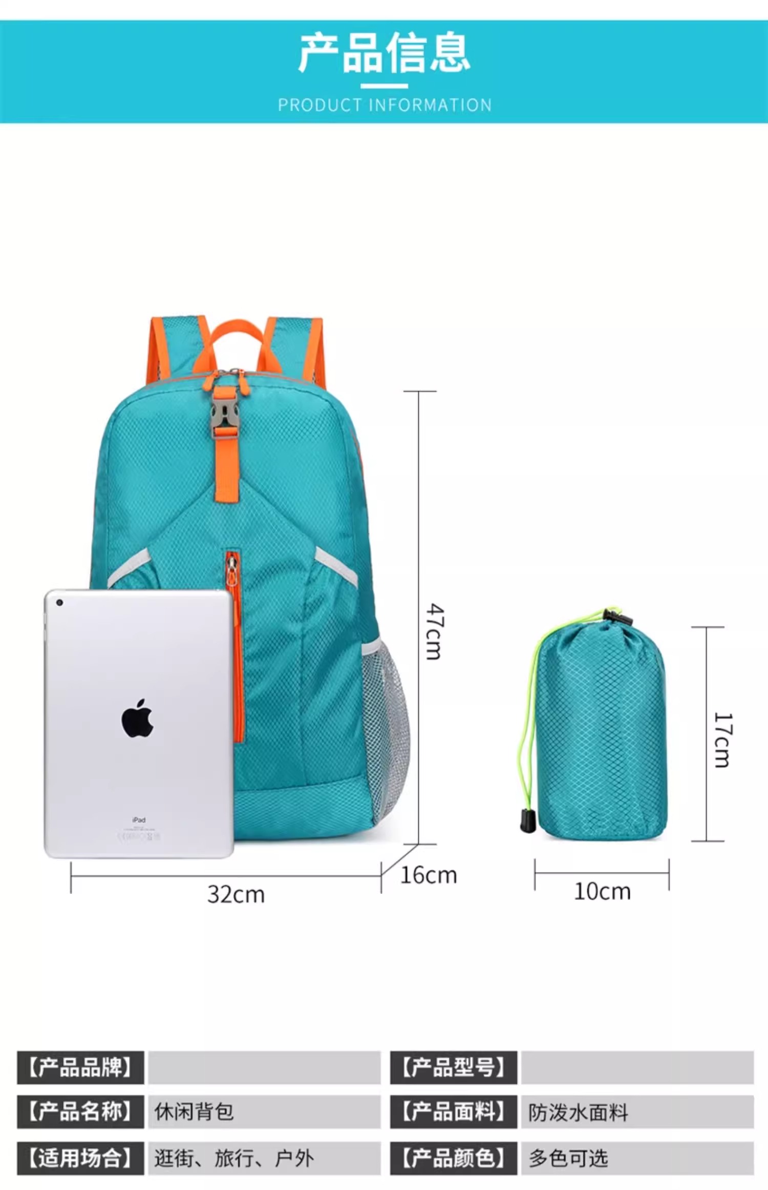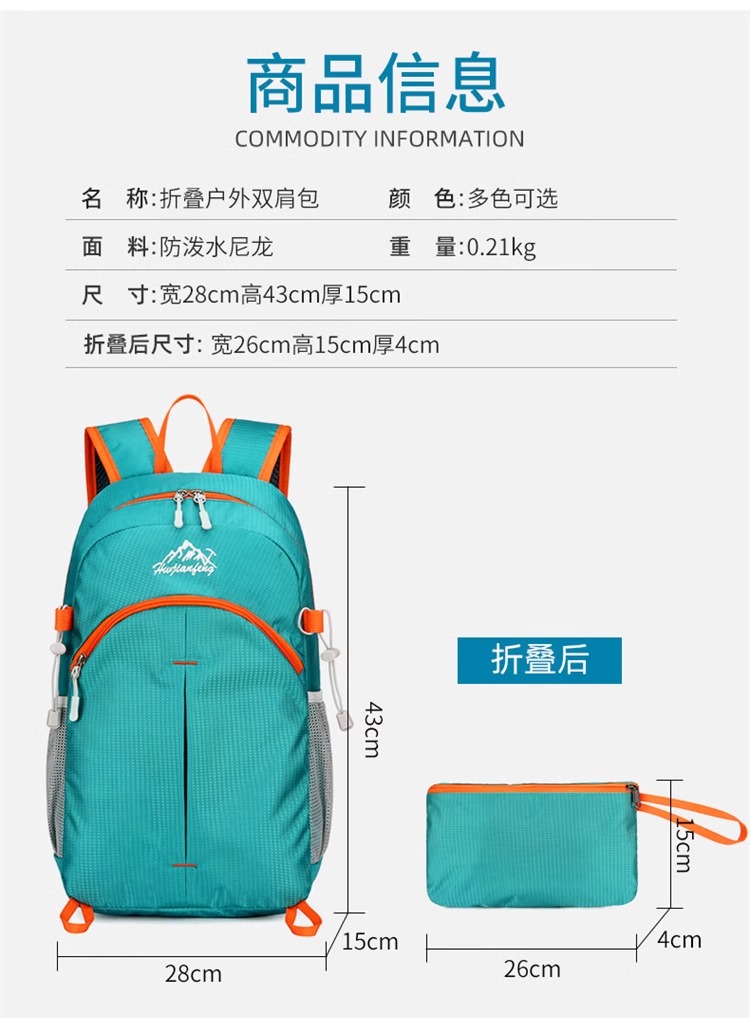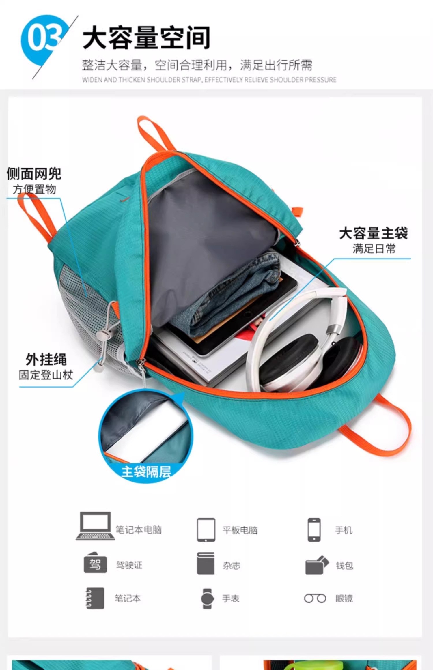 倍想双肩包户外运动轻便背包可折叠登山运动休闲大容量旅行包