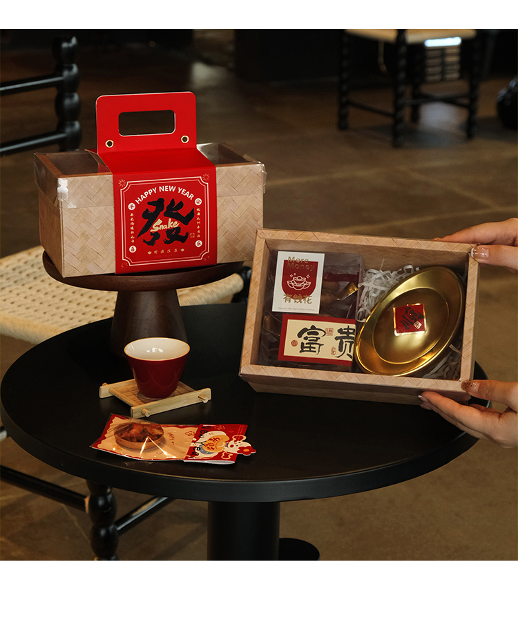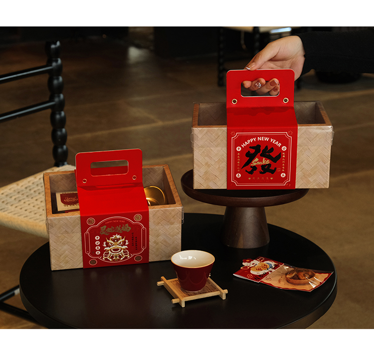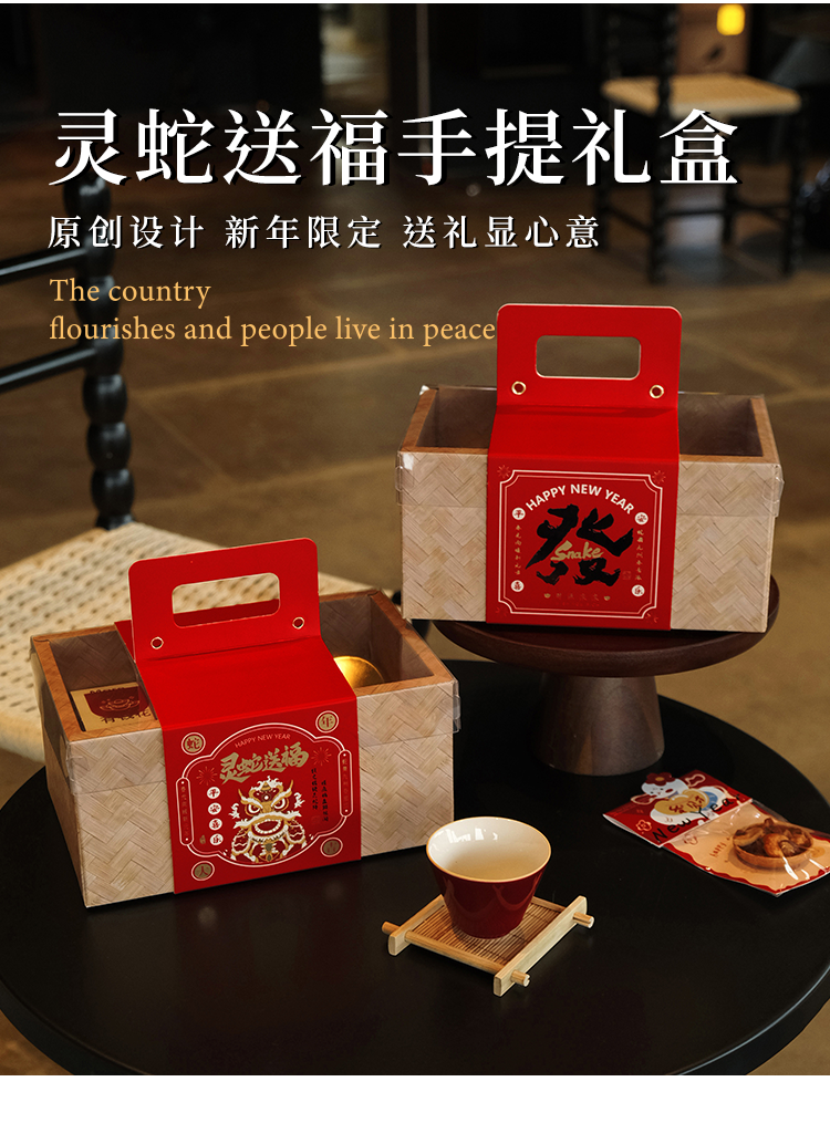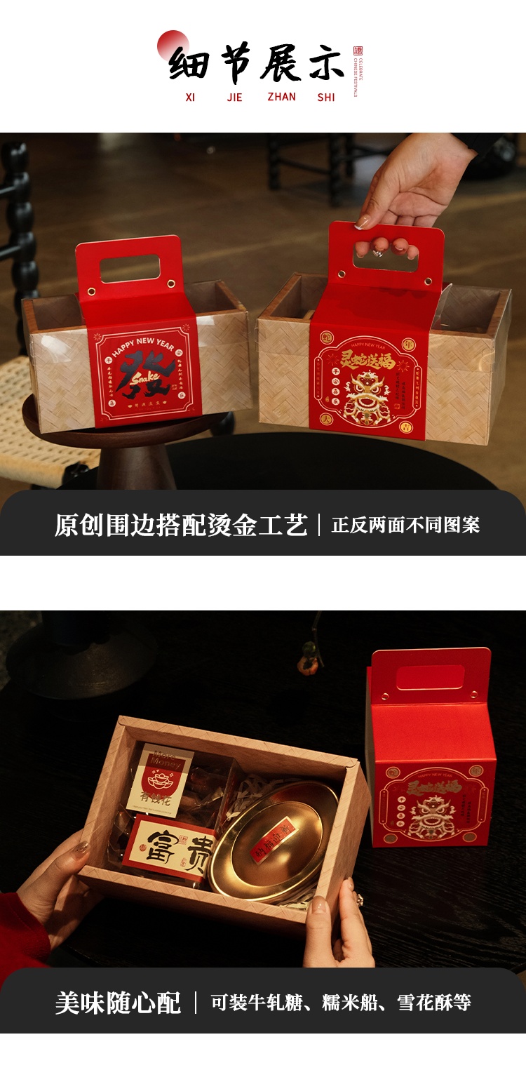 2025新年礼盒包装盒蛇年饼干糖果糕点伴手礼盒手提竹编礼品盒年货