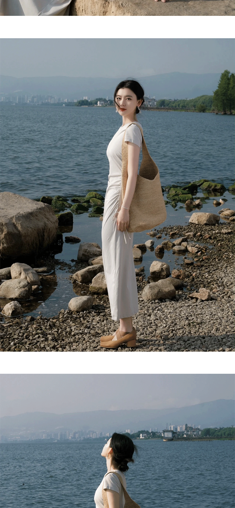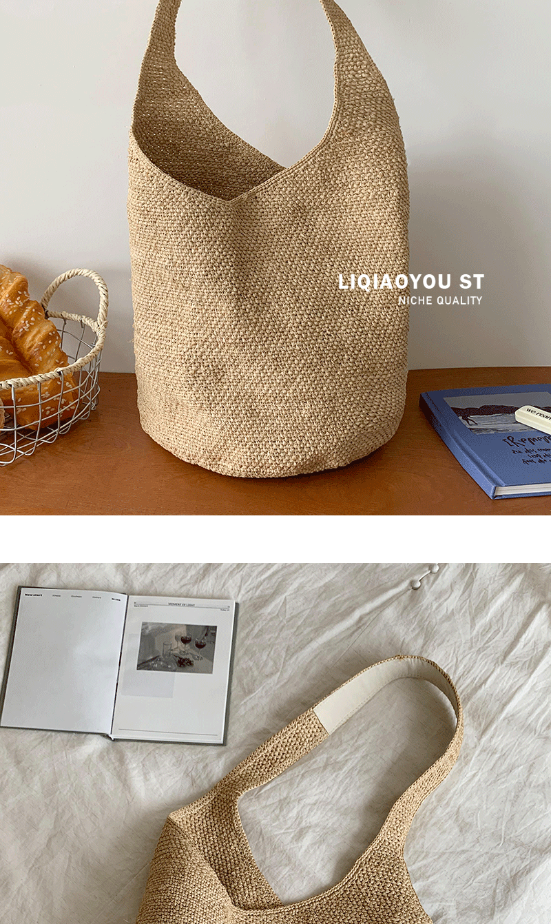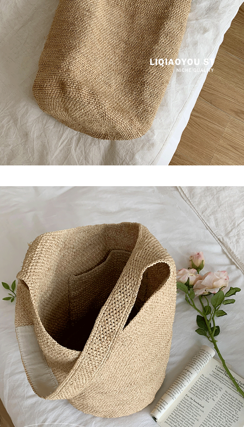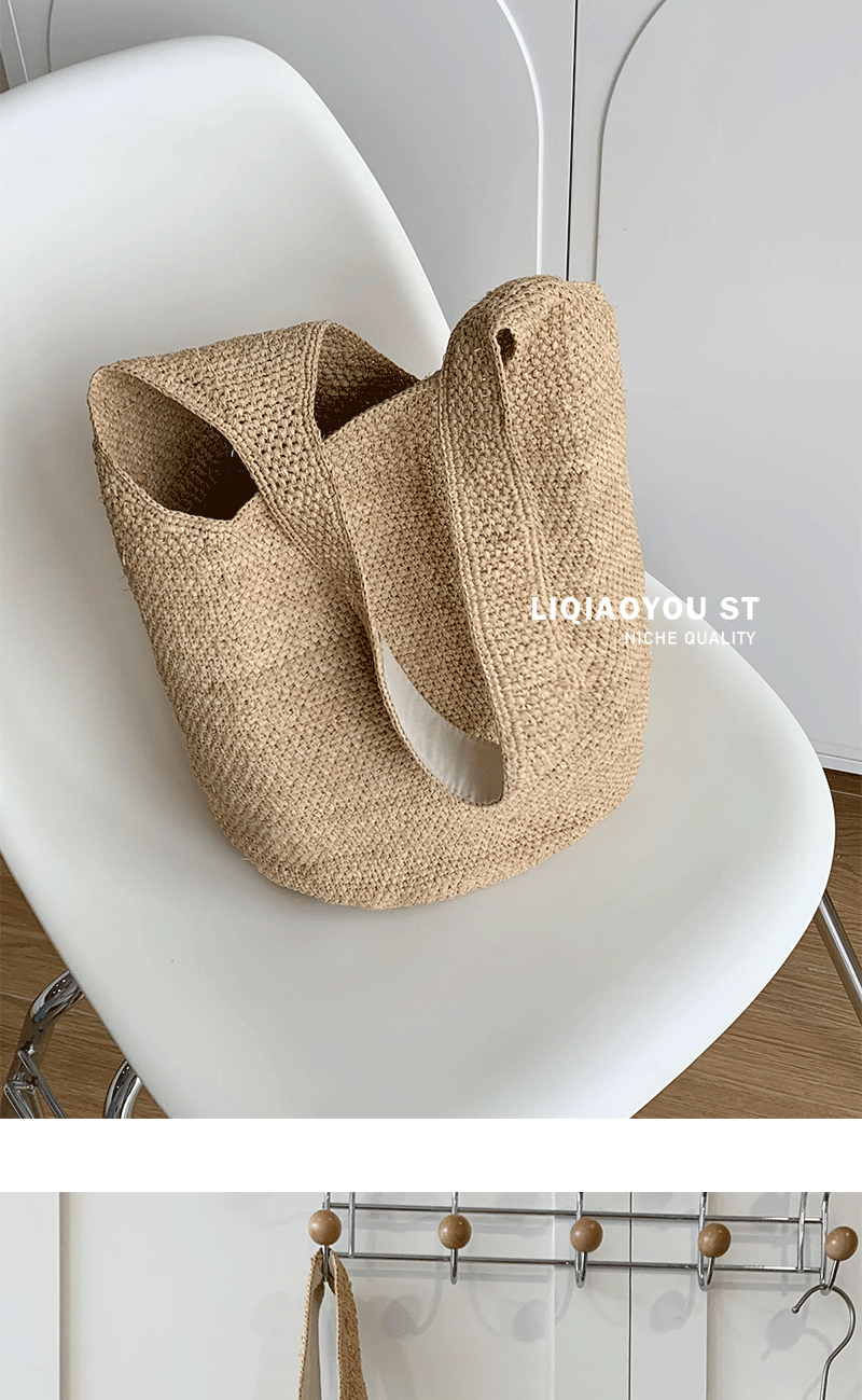 李乔优 简约高级100%拉菲草单肩水桶包大容量百搭度假沙滩编织包