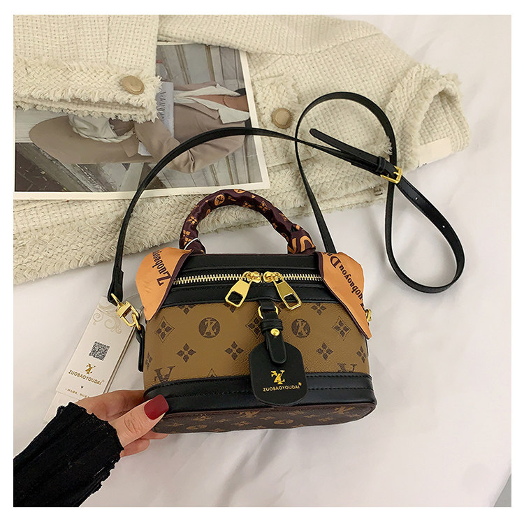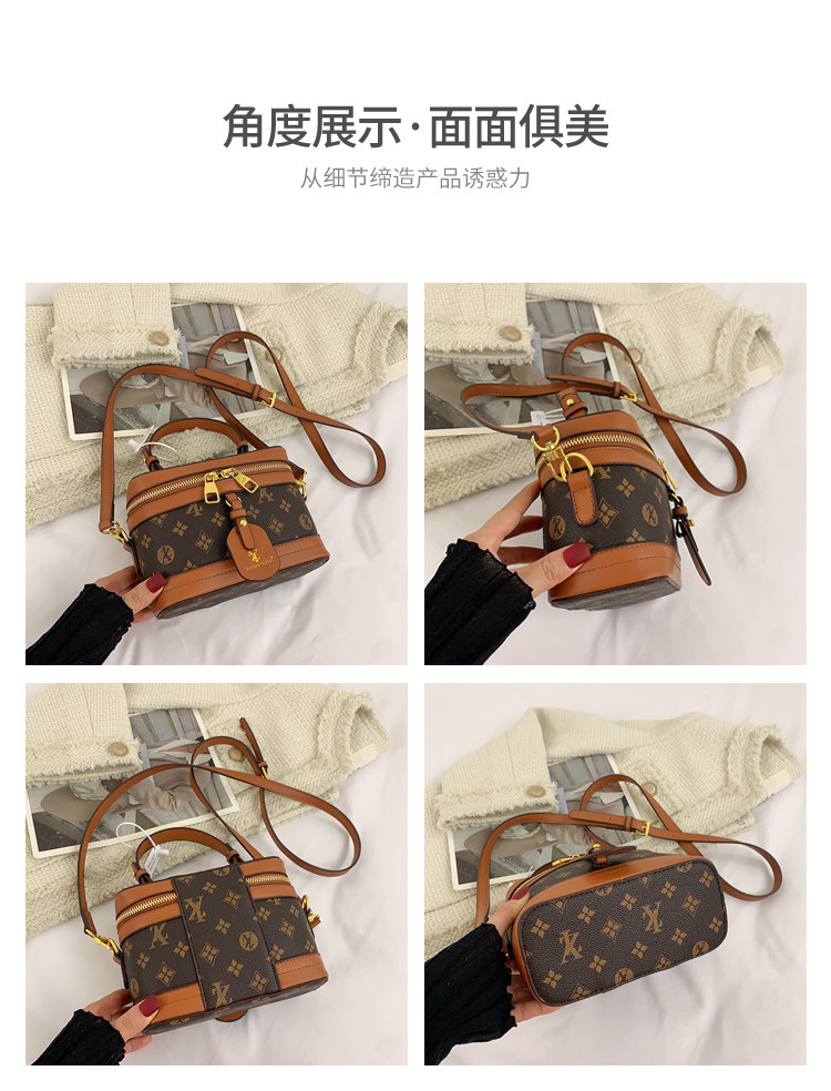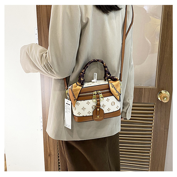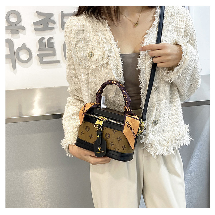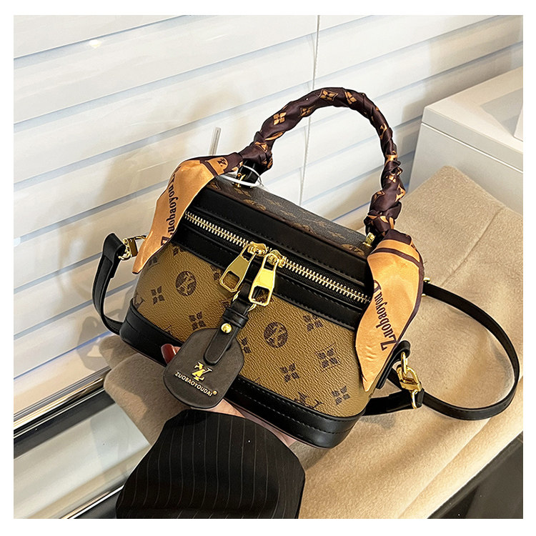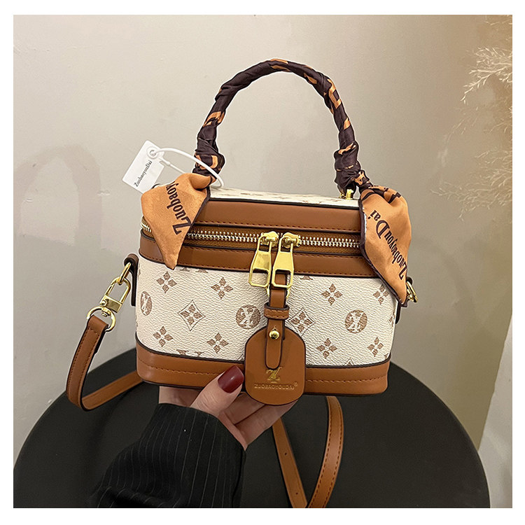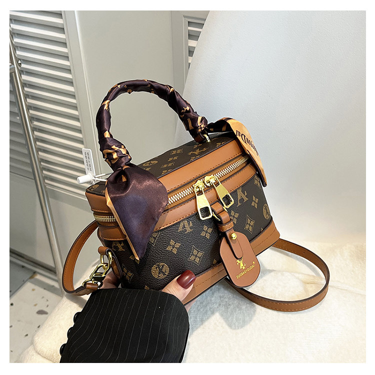 盒子包女包2025新款潮时尚复古丝巾手提水桶包老花单肩斜挎饭桶包