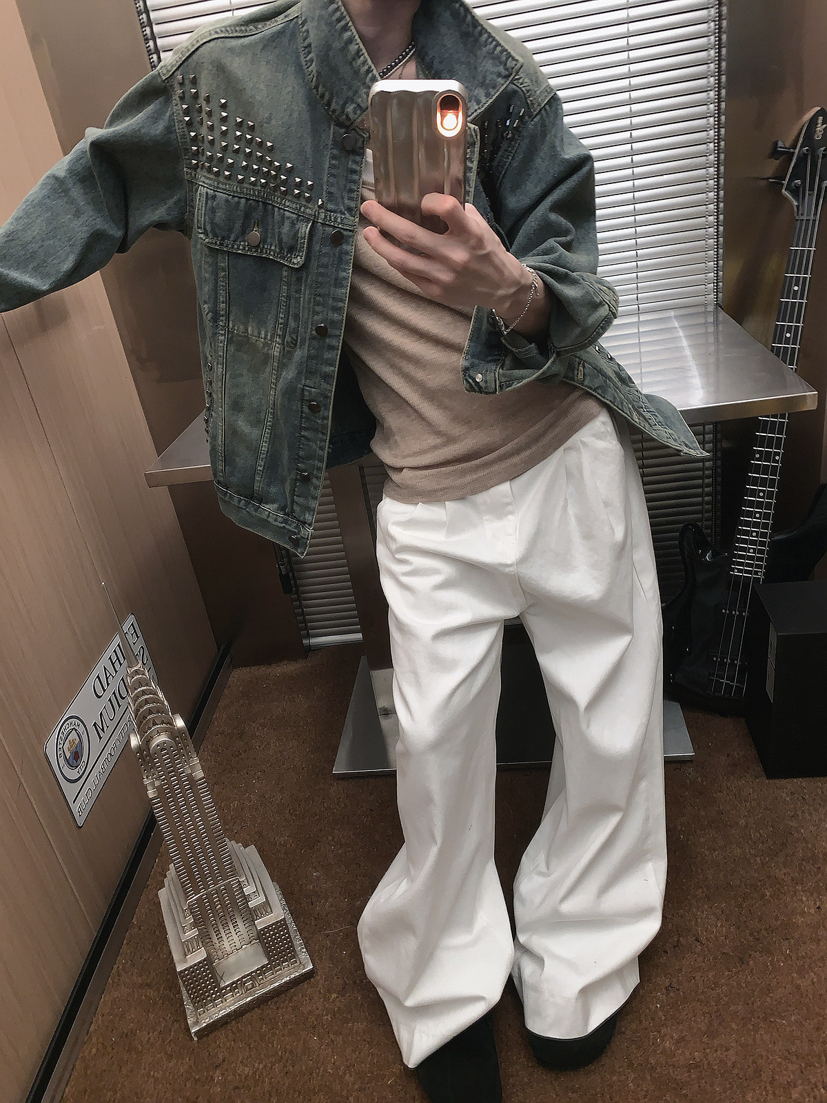 阿荒与阿卤美式复古水洗重工铆钉牛仔外套男宽松潮流痞帅夹克上衣