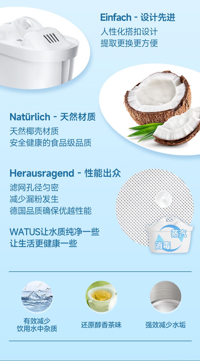 德国过滤水壶家用净水器除垢自来水原装滤芯适用碧然德非直饮7枚