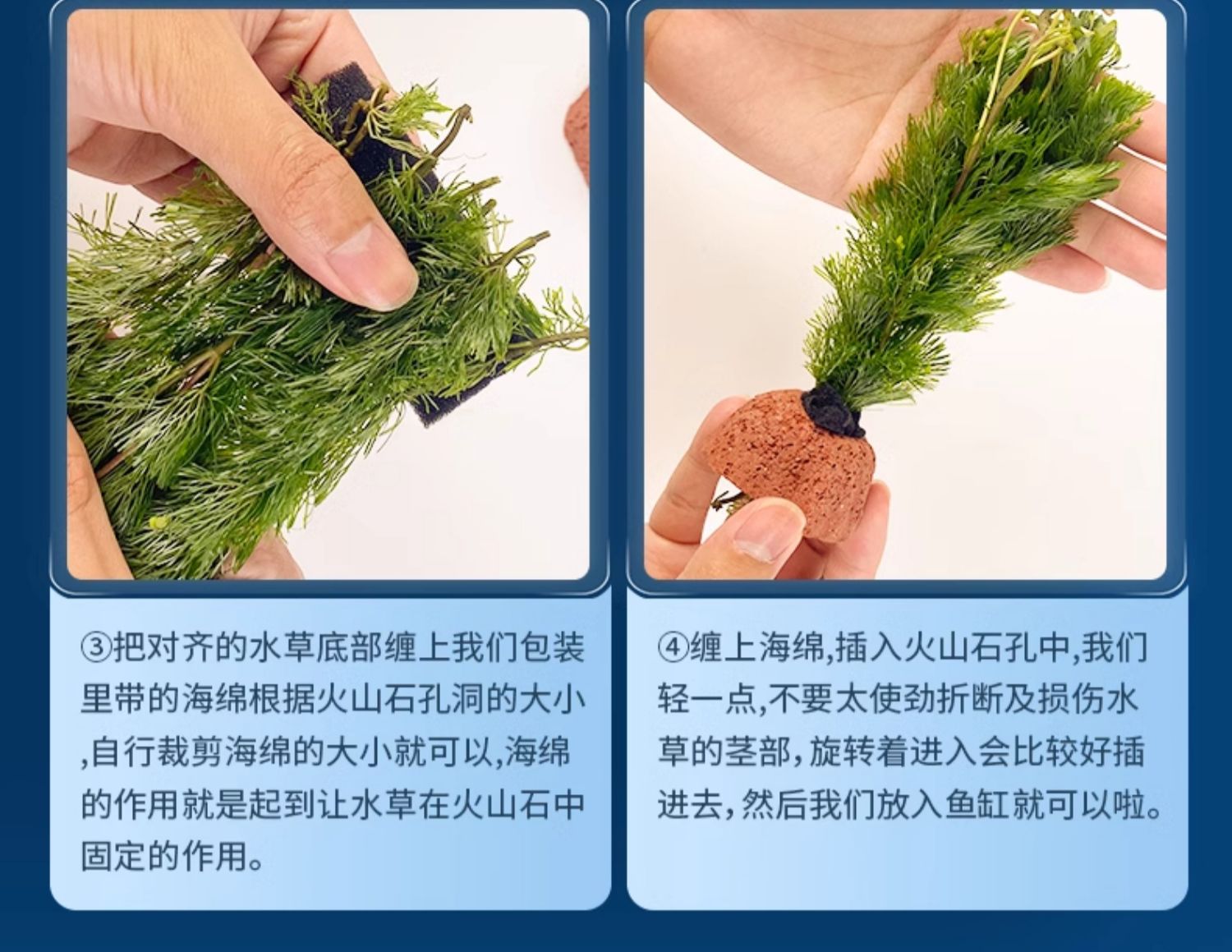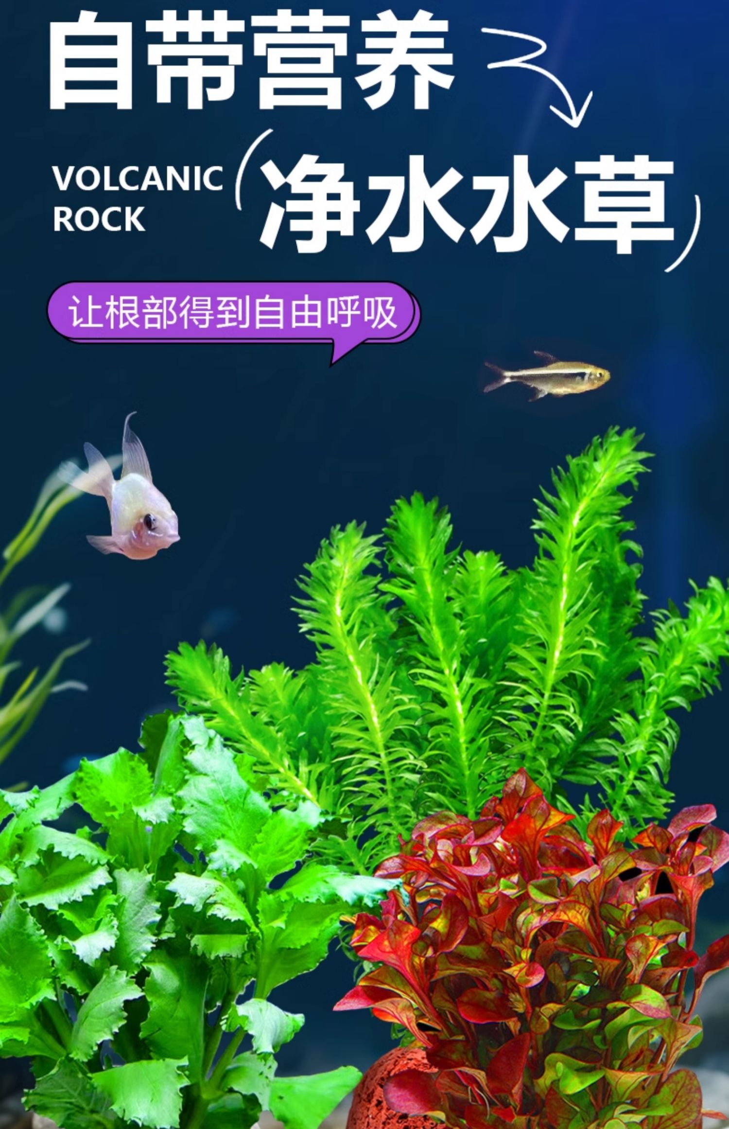 火山石水草植物鱼缸造景装饰水培阴性蜈蚣草绿菊真草净化水质套餐