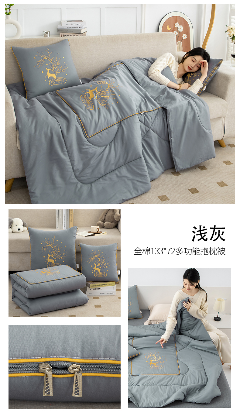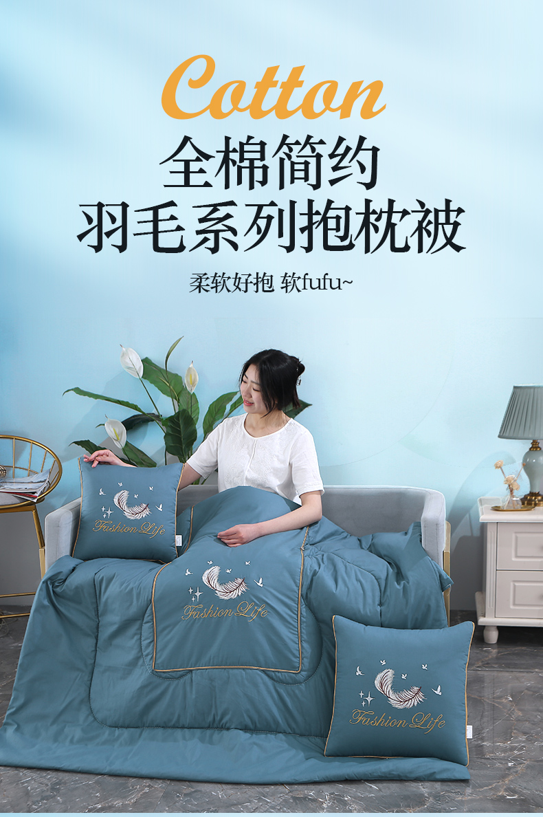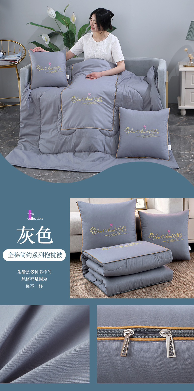 简约纯棉两用抱枕被高档二合一汽车靠垫办公室午睡枕头折叠空调被