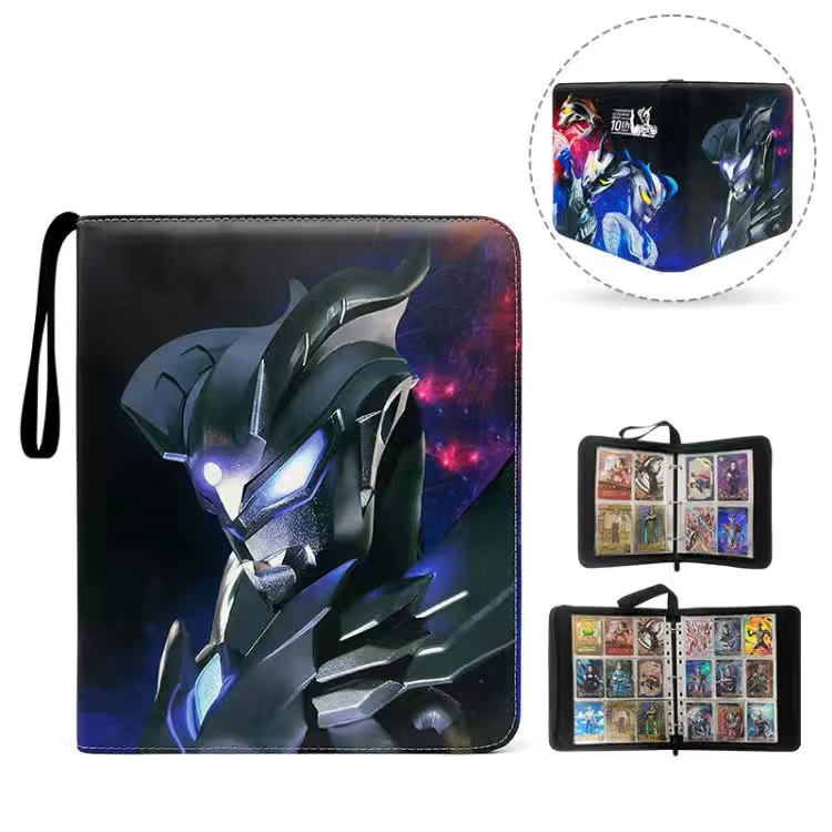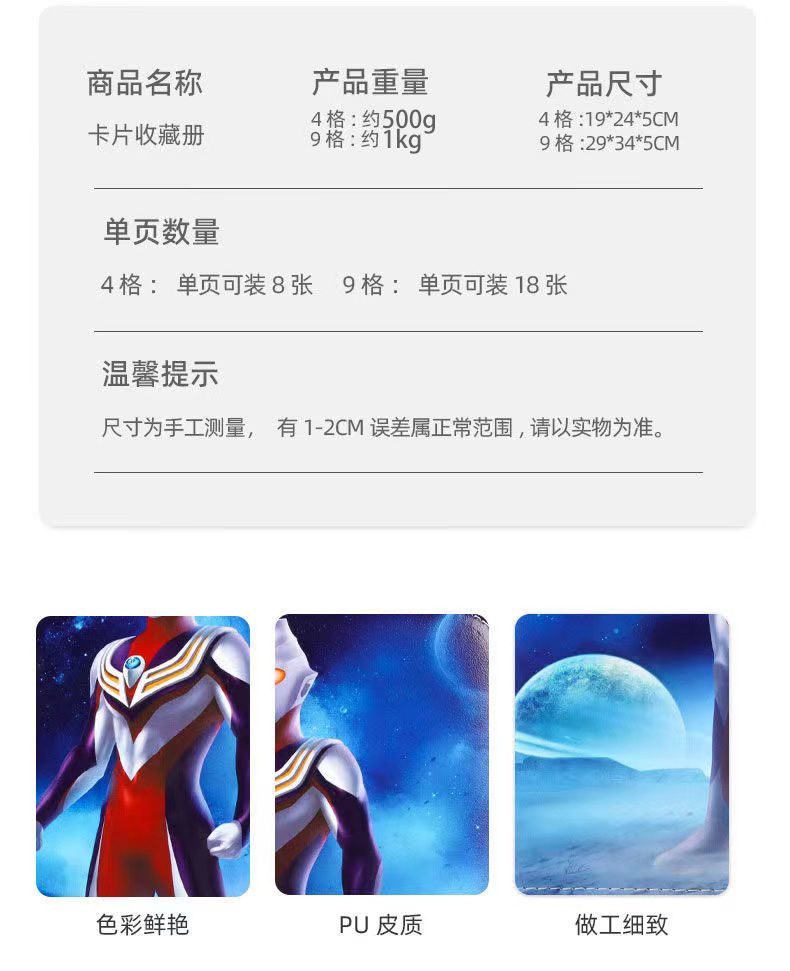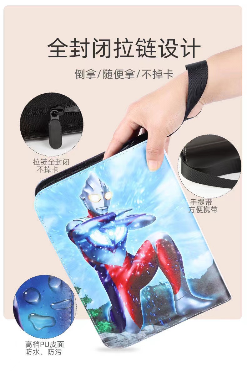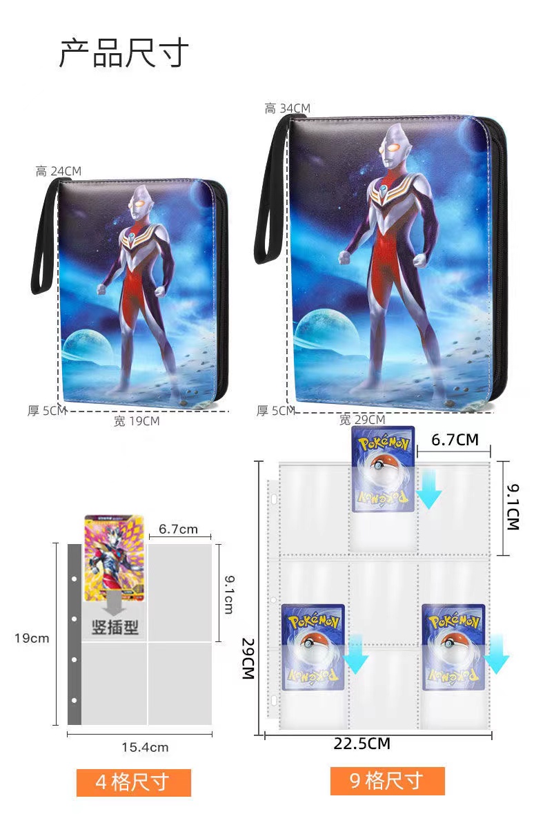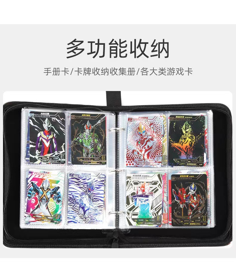 新九格奥特曼卡册豪华集卡册大容量儿童卡片收集册皮质带拉链卡套四格四百卡位/收纳手册游戏黄金正版对决