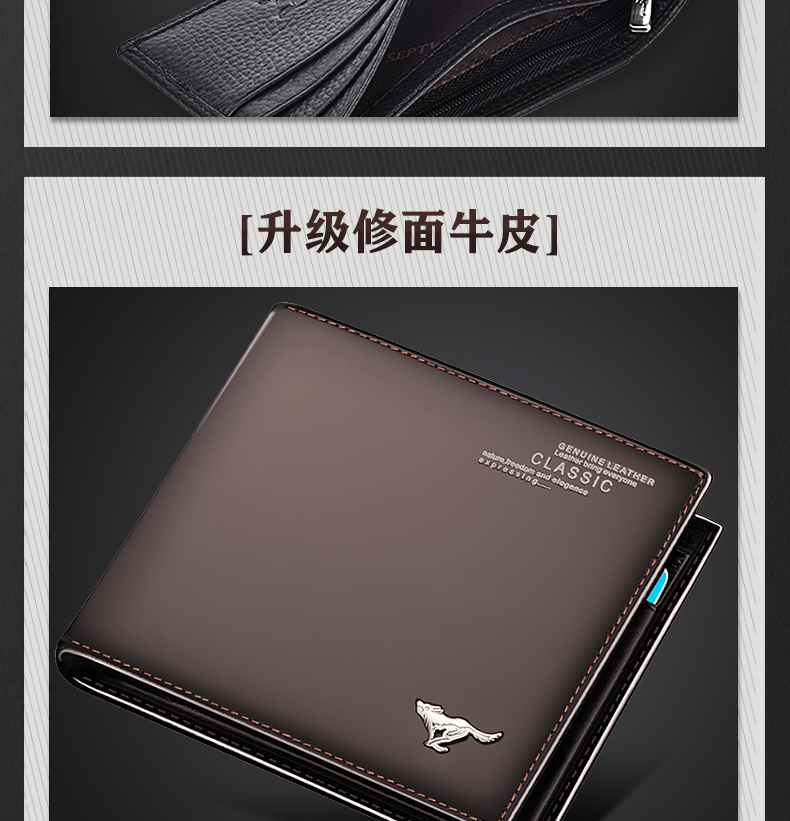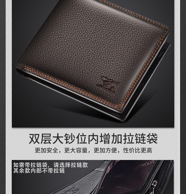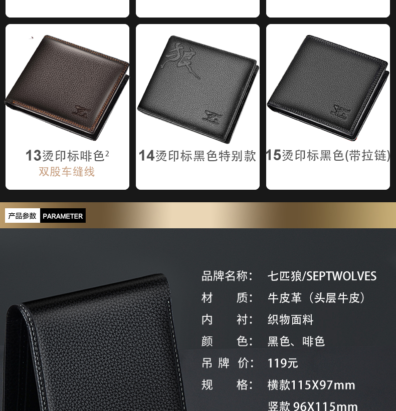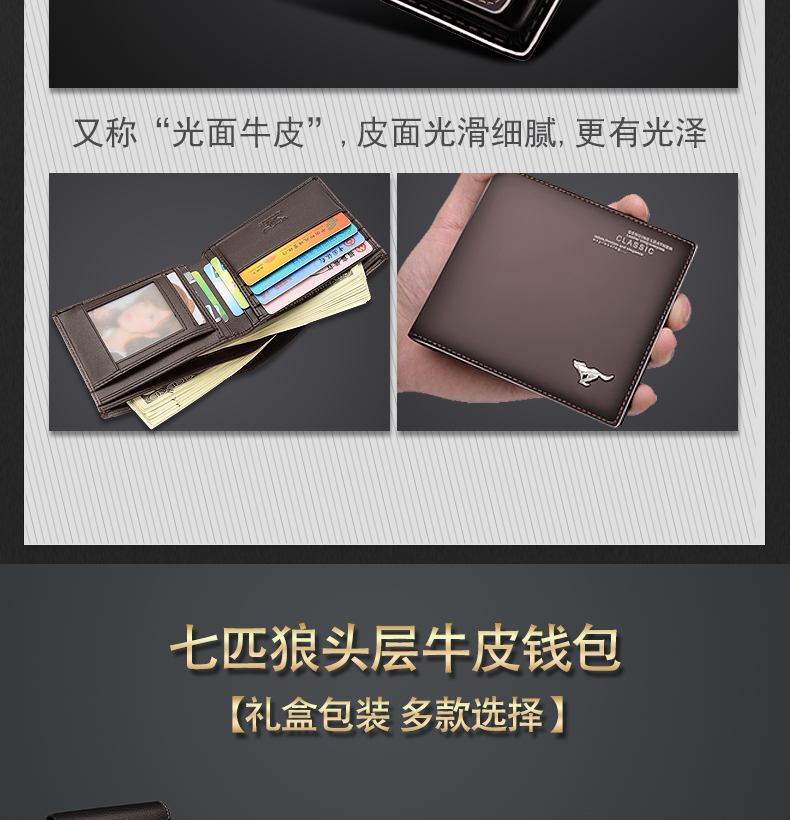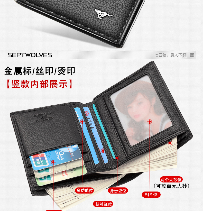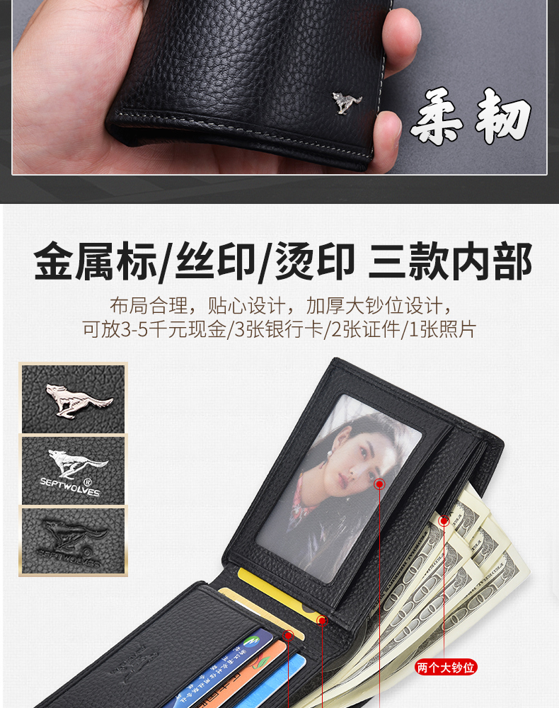 七匹狼男士真皮短款钱包2025新款简约钱夹头层牛皮卡包青年皮夹潮