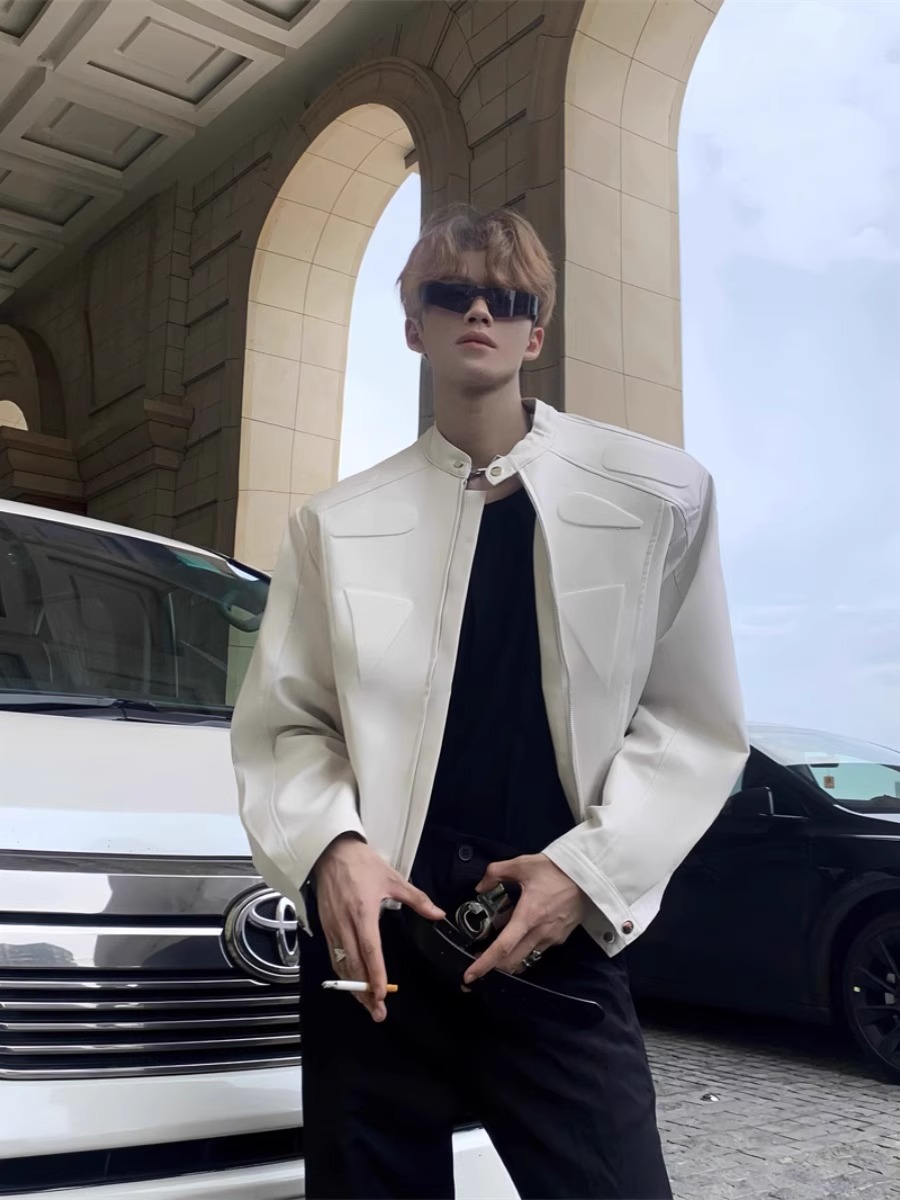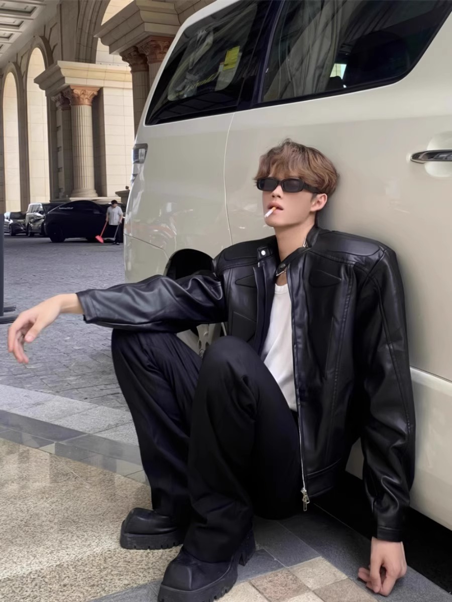 RRC 小众结构设计高级感机车夹克外套男炸街垫肩皮衣外套