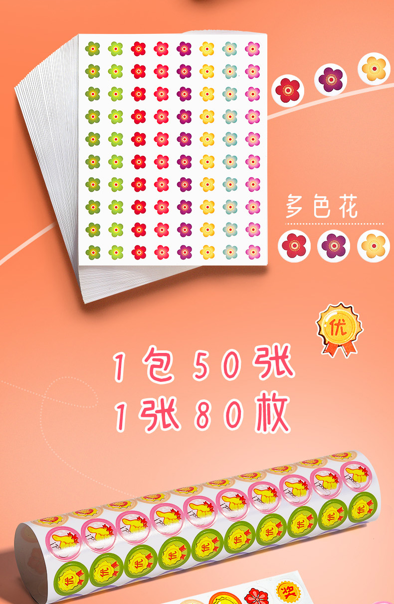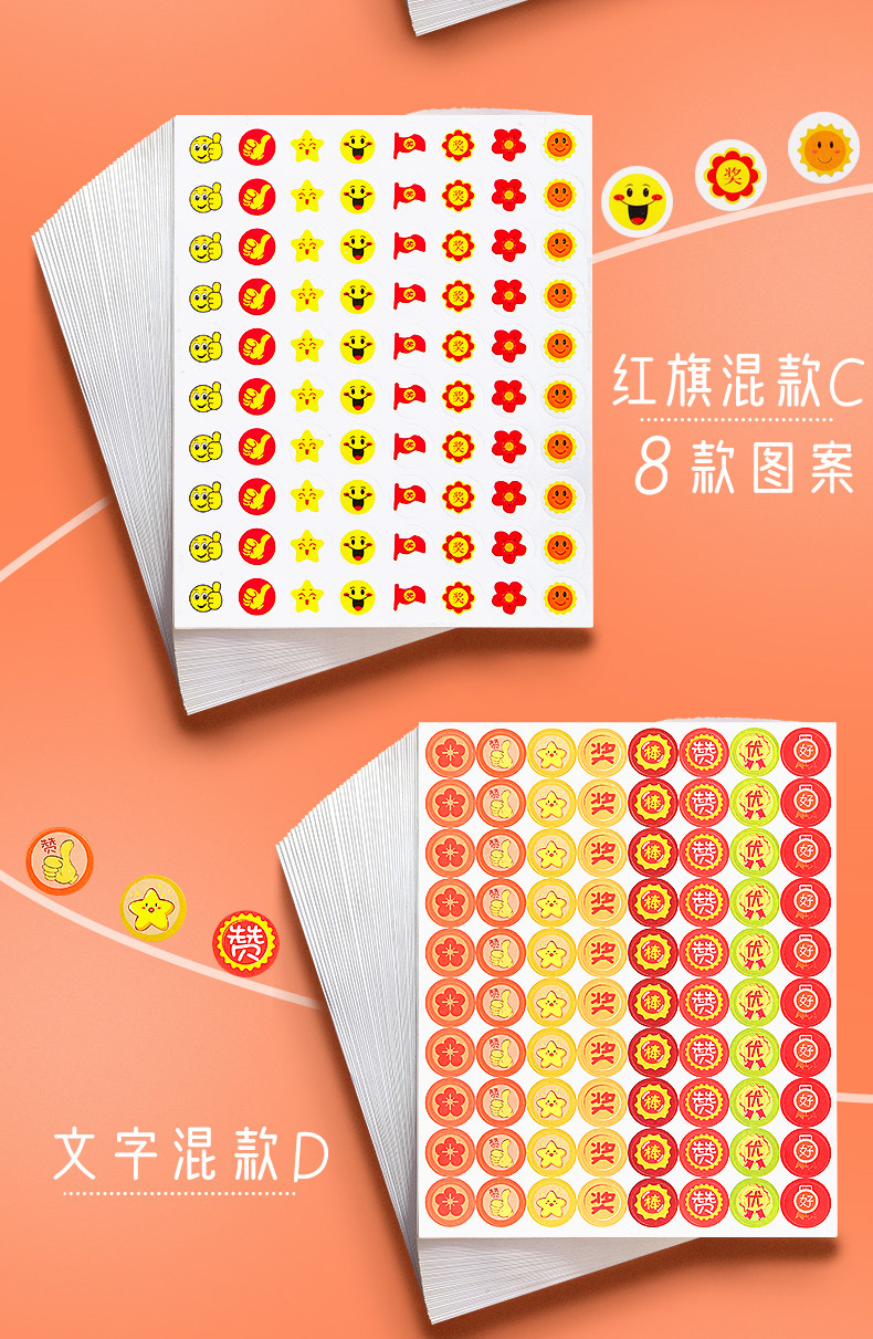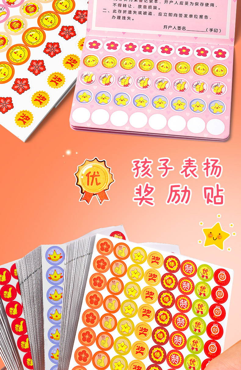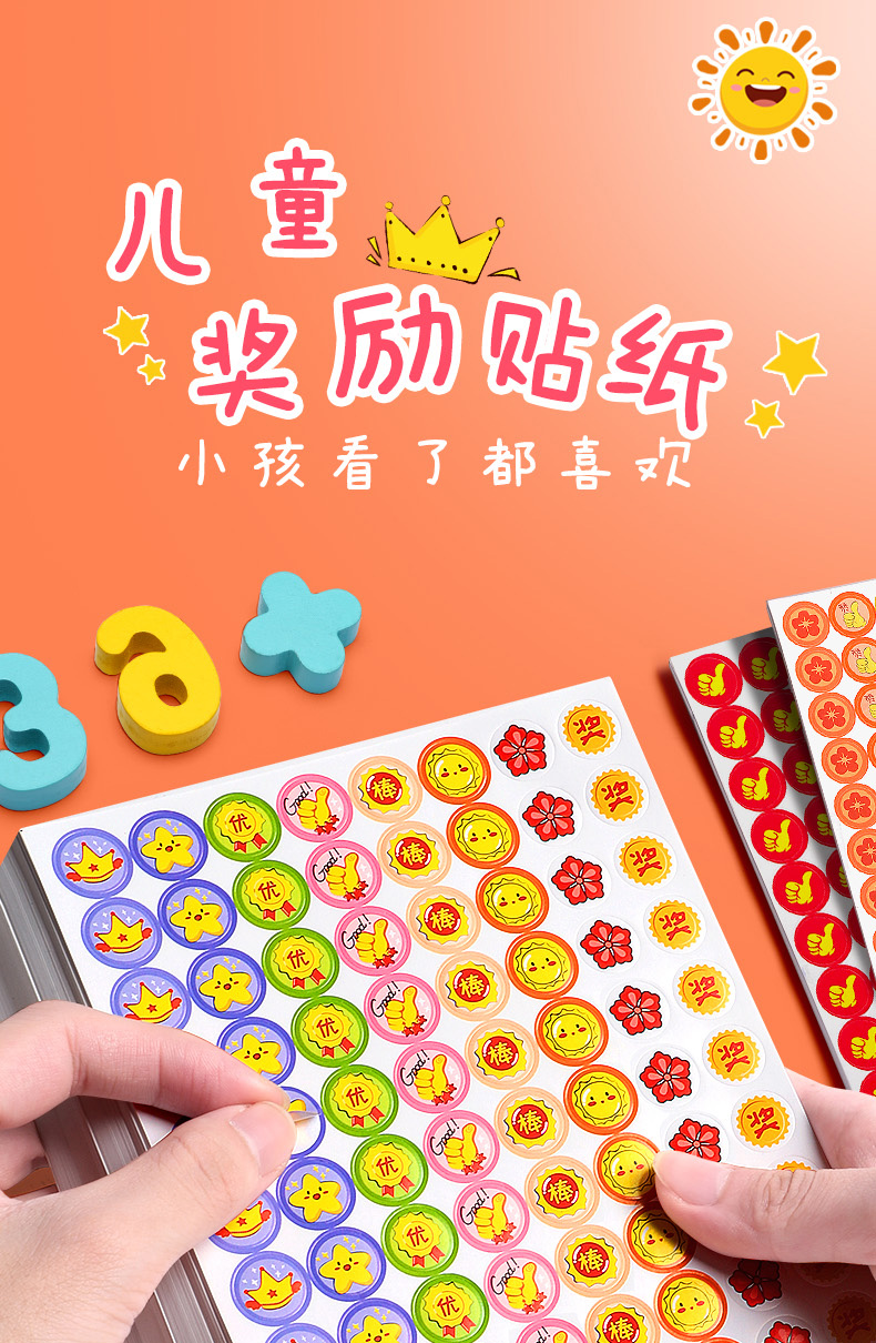 儿童奖励贴纸小红花奖励贴小贴画小学生幼儿园迷你表扬贴一年级大拇指奖励孩子的教师专用卡通小朋友星星鼓励