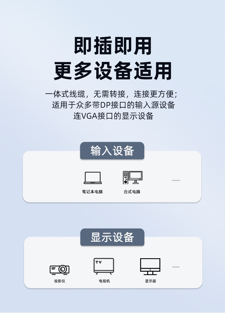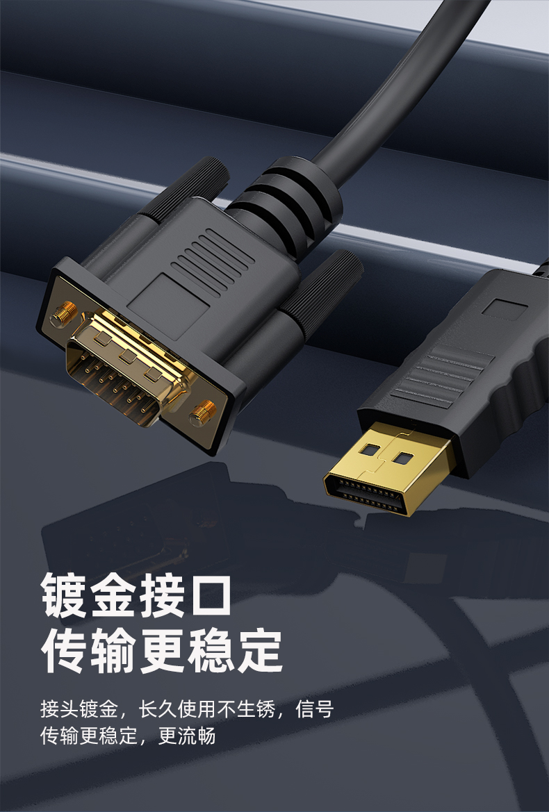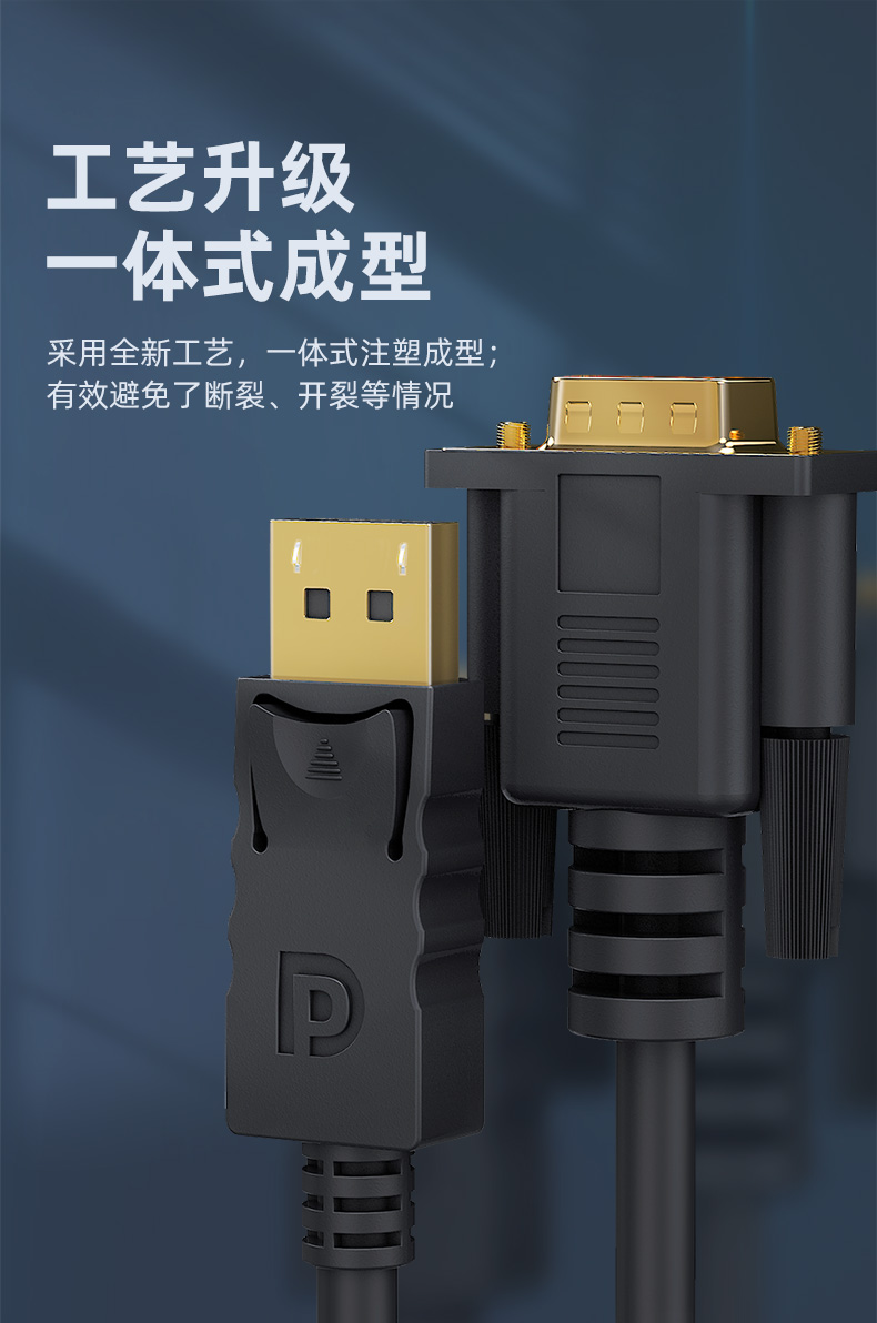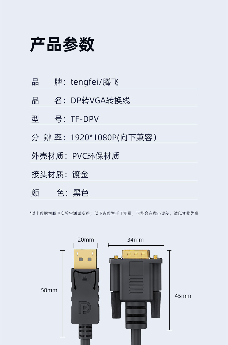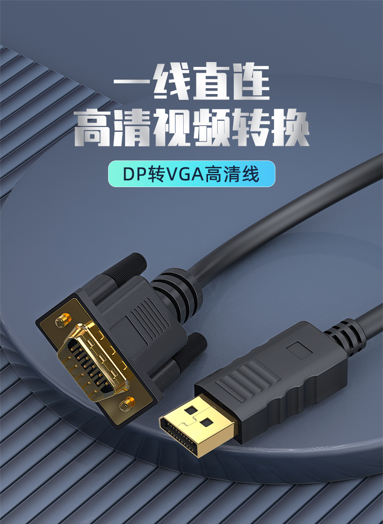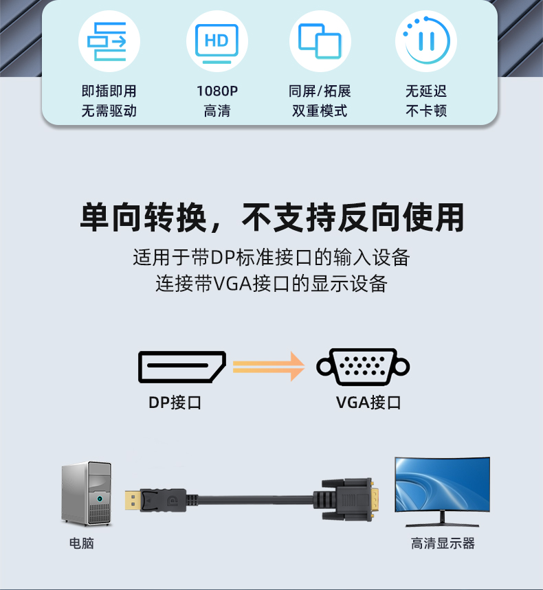腾飞dp转vga线转换器displayport转接头电脑显卡连接电视机显示器带卡扣1080p笔记本外接投影仪