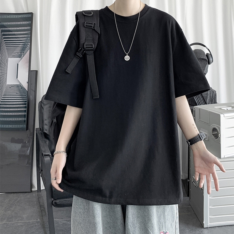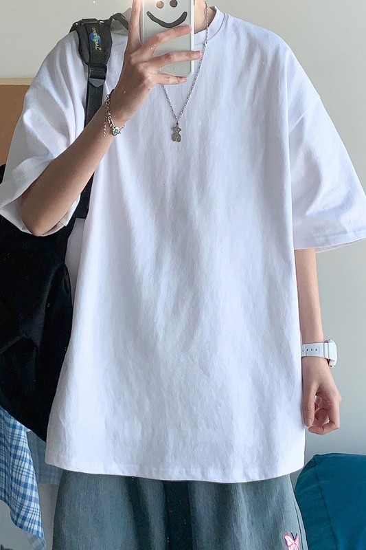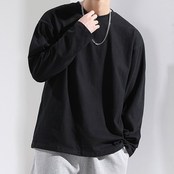 秋冬新款长袖t恤男宽松百搭港风纯色简约休闲圆领打底衫短袖上衣