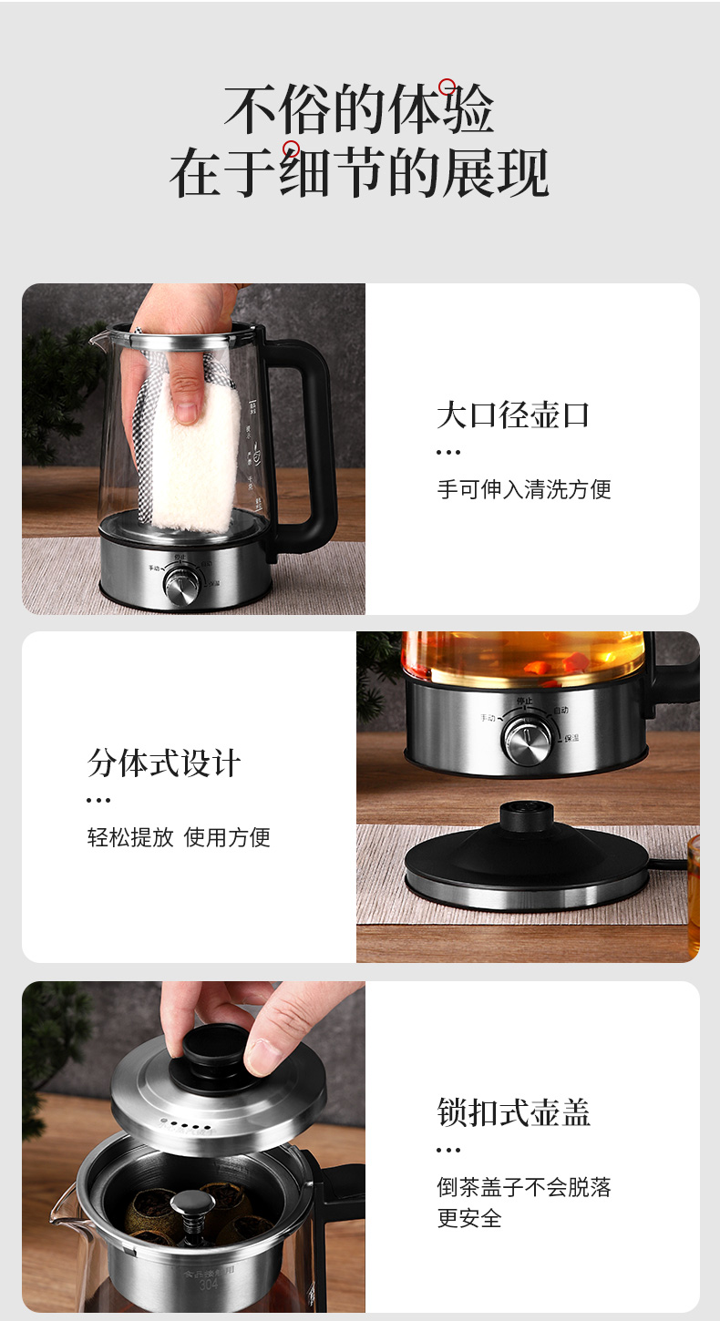 大容量煮茶器电茶炉家用办公室蒸茶黑茶白茶蒸汽喷淋式养生壶2升L
